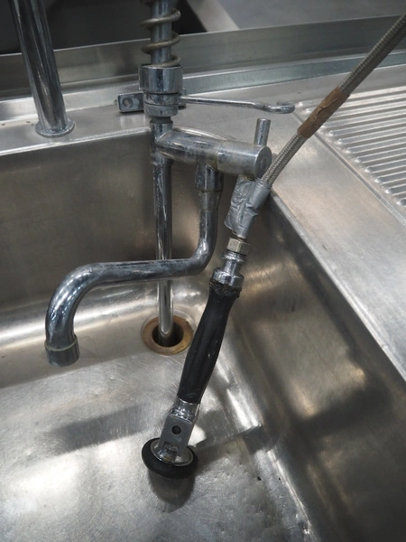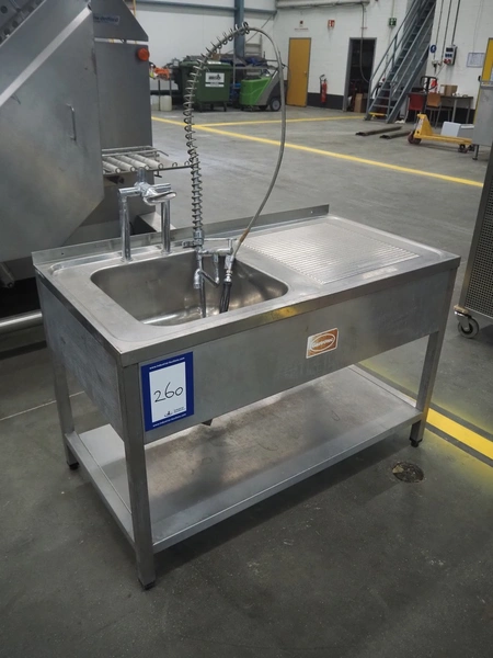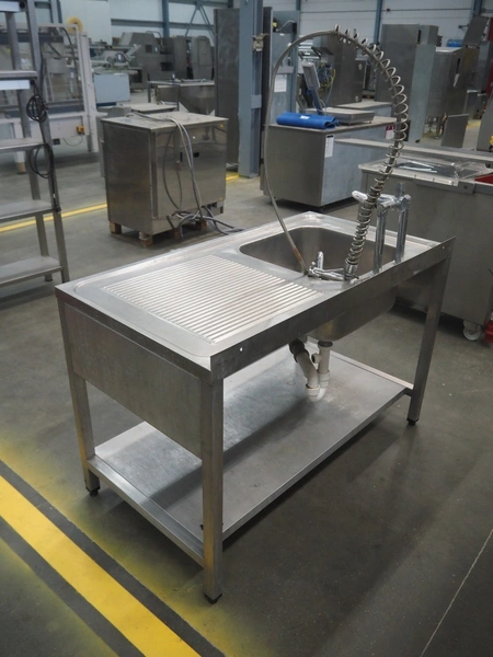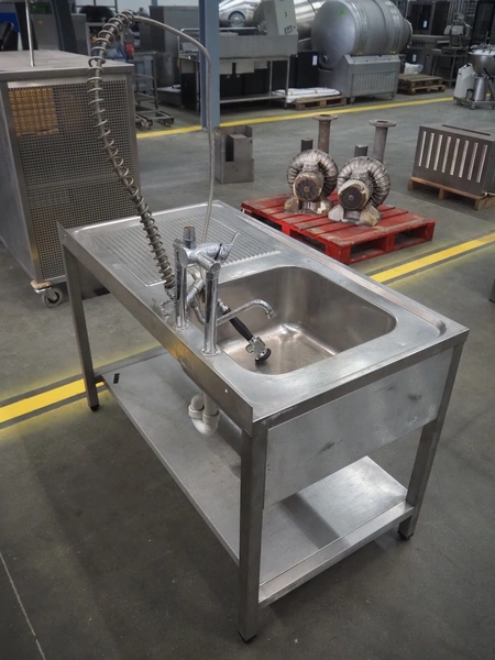 Gastrotec s/s sink with faucet, dimensions: 1300 mm x 710 mm x 1150 mm. Faucet is broken.