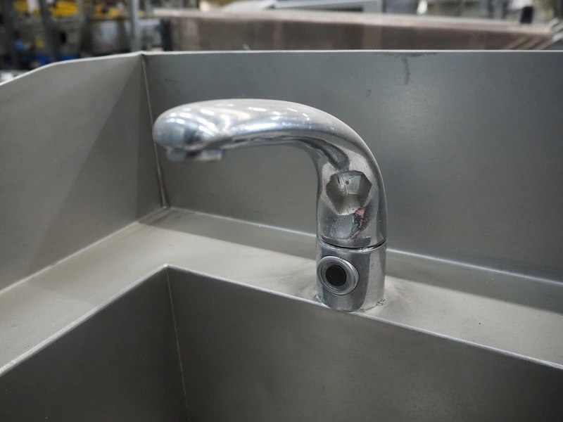 S/s sink with faucet, sensor control, dimensions: 450 mm x 500 mm x 1000 mm.