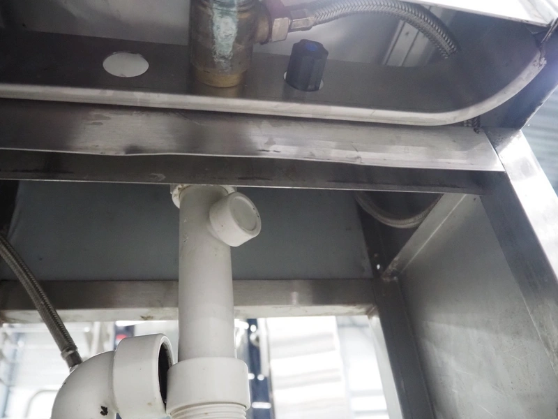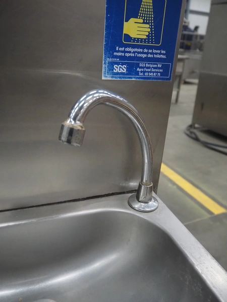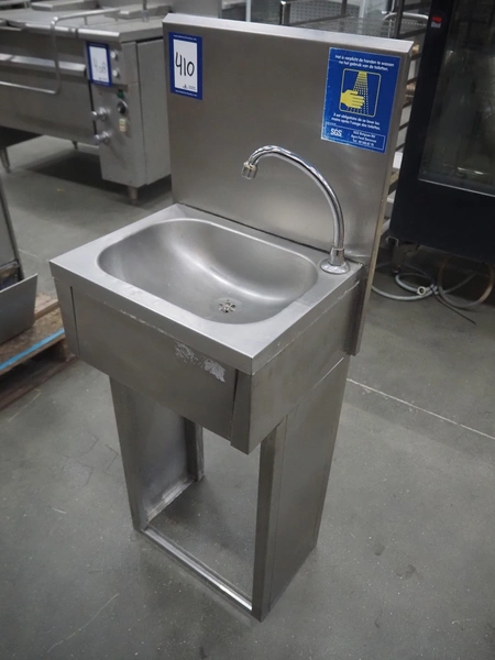 S/s sink with faucet, dimensions: 350 mm x 450 mm x 1150 mm.