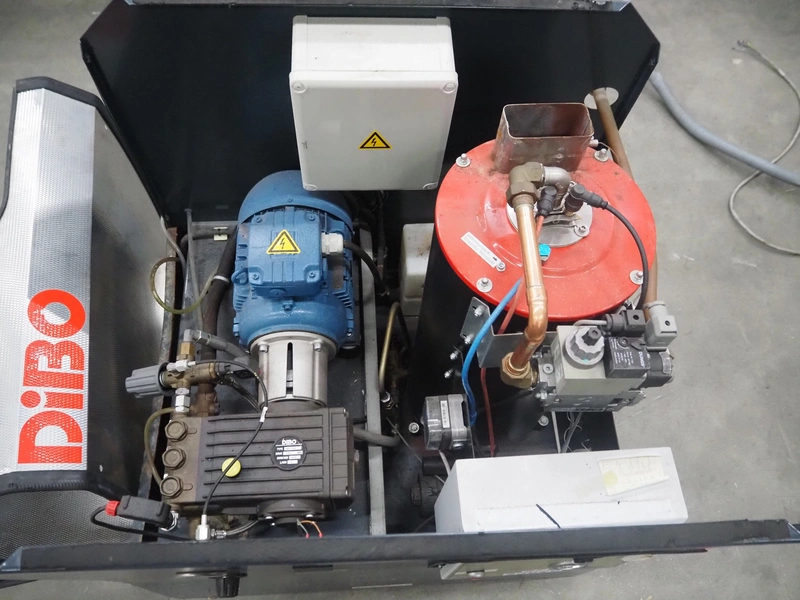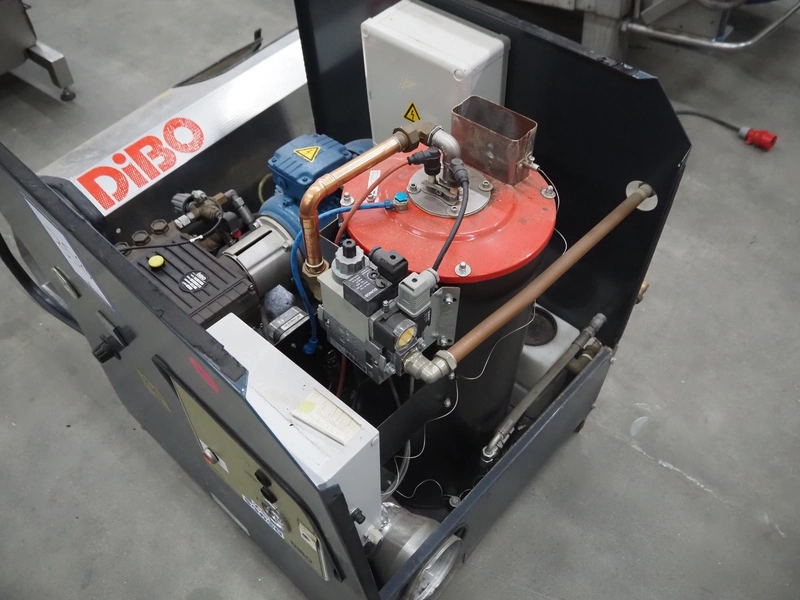 DiBo N.V. hot water pressure cleaner, type: SBH-G 150bar 15ltr, serial number: 2-0155/16, 400 V, 3 Ph, 50 Hz, gas heated boiler, pressure: 150 bar, operating hours: 3225, dimensions: 850 mm x 920 mm x 1180 mm.