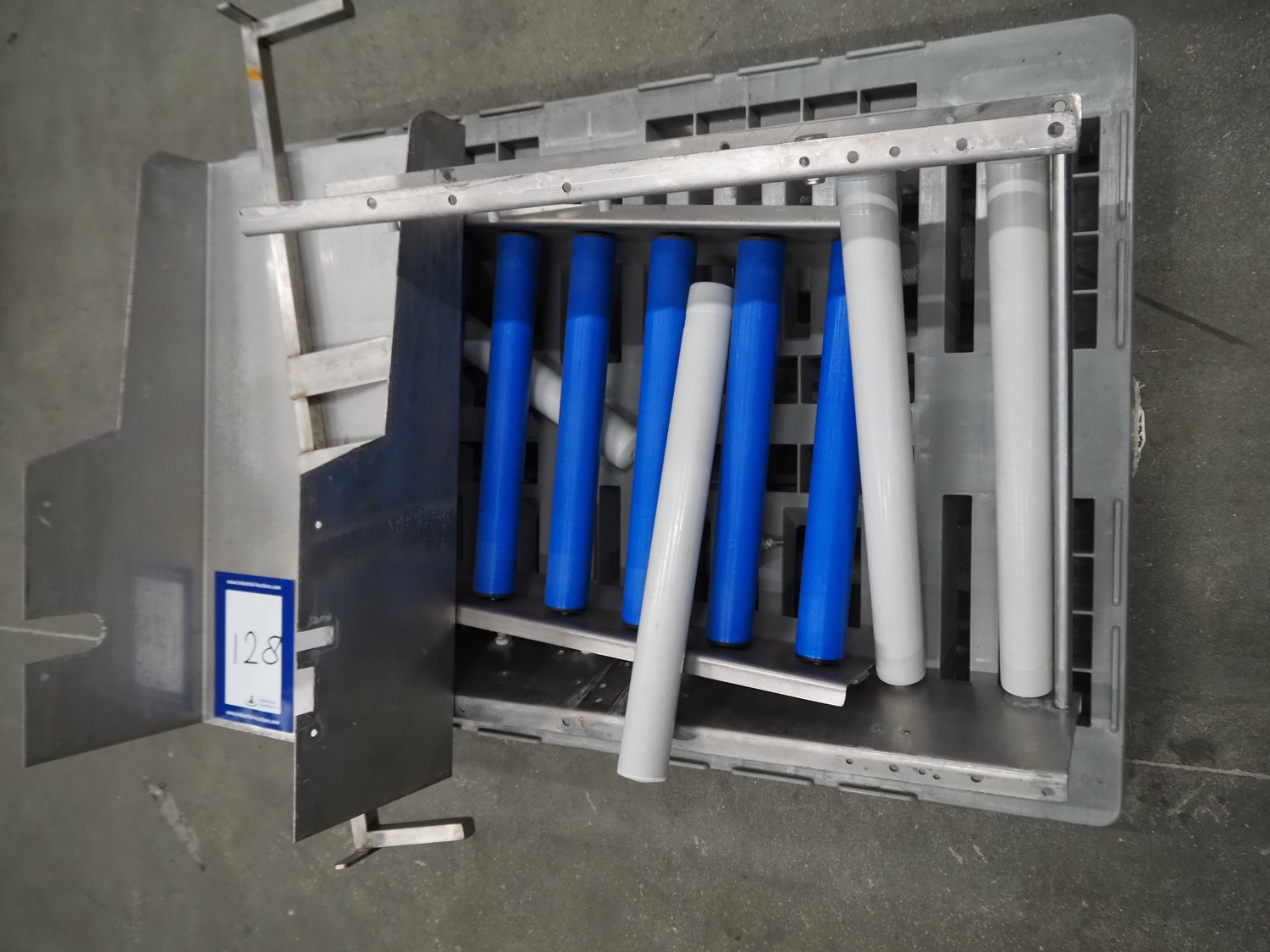 S/s frame with plastic rollers, roller width: 420 mm, dimensions: 700 mm x 470 mm x 150 mm.
