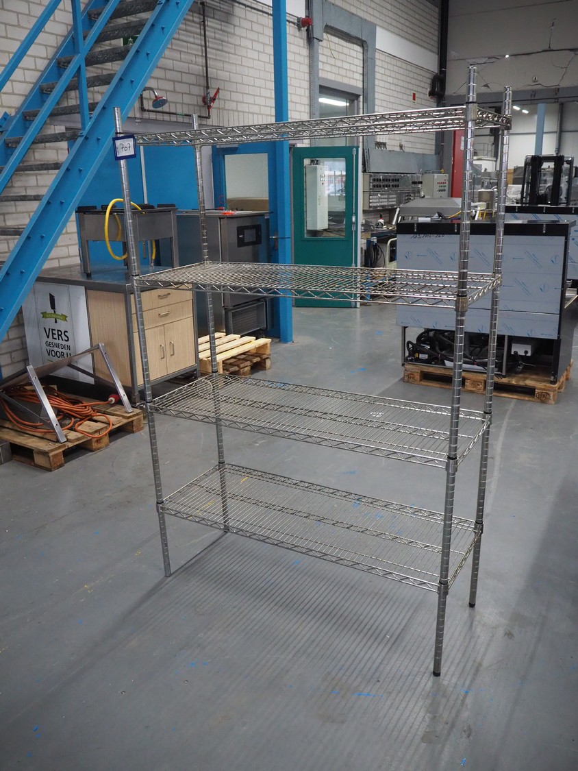 S/s rack, 4 floors, dimensions each floor: 1210 mm x 460 mm, total dimensions: 1210 mm x 460 mm x 1850 mm.