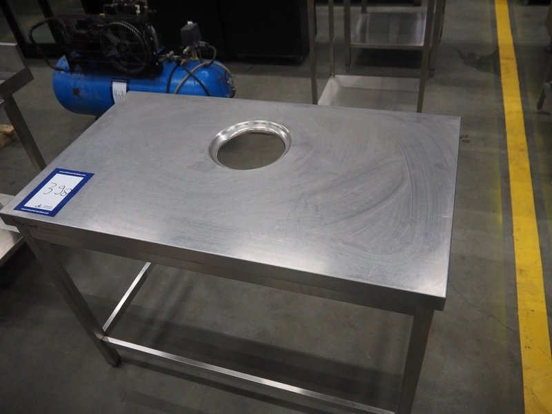 Kitchen Concept s/s table, hole diameter: 205 mm, total dimensions: 1200 mm x 700 mm x 870 mm.