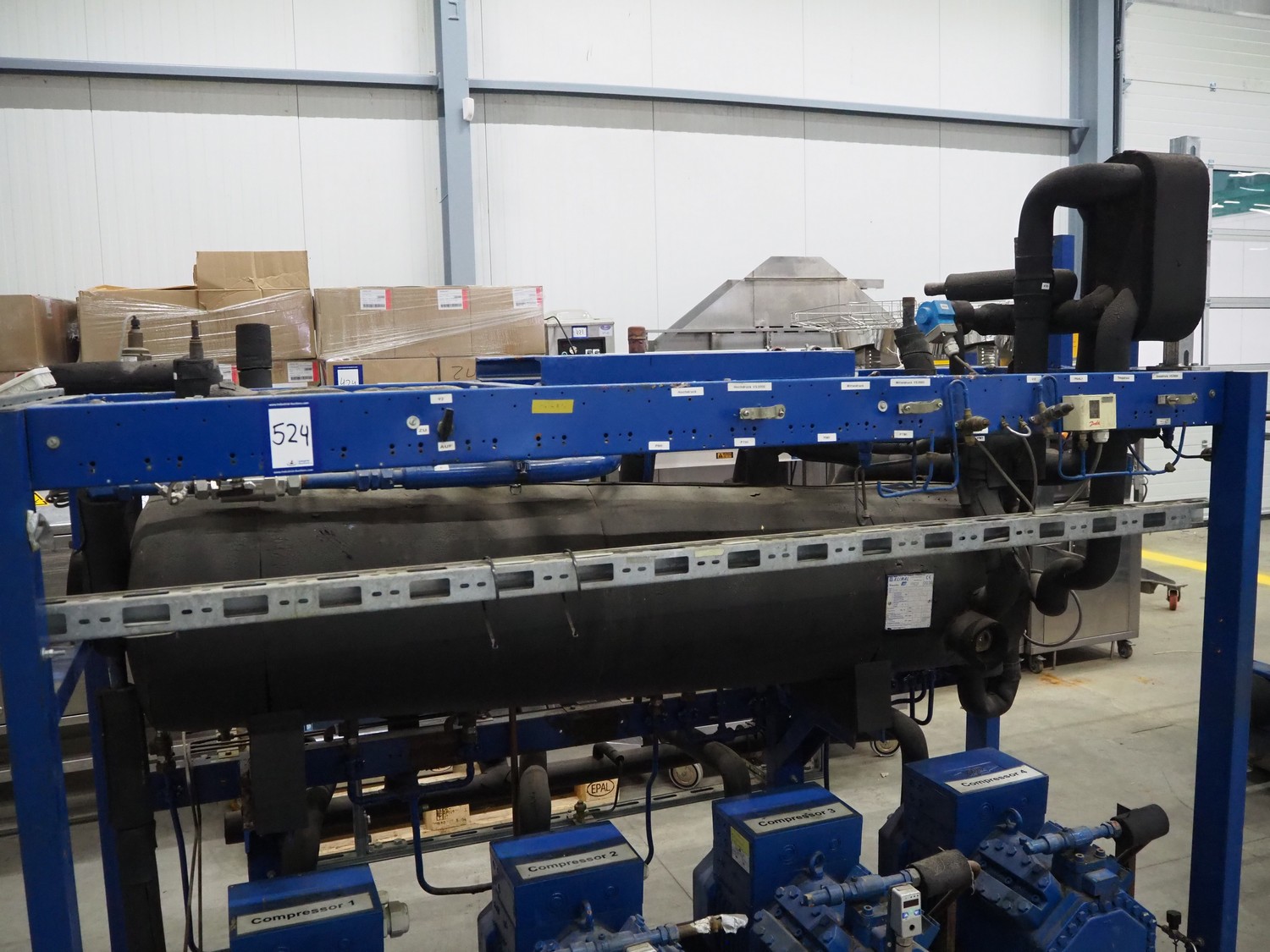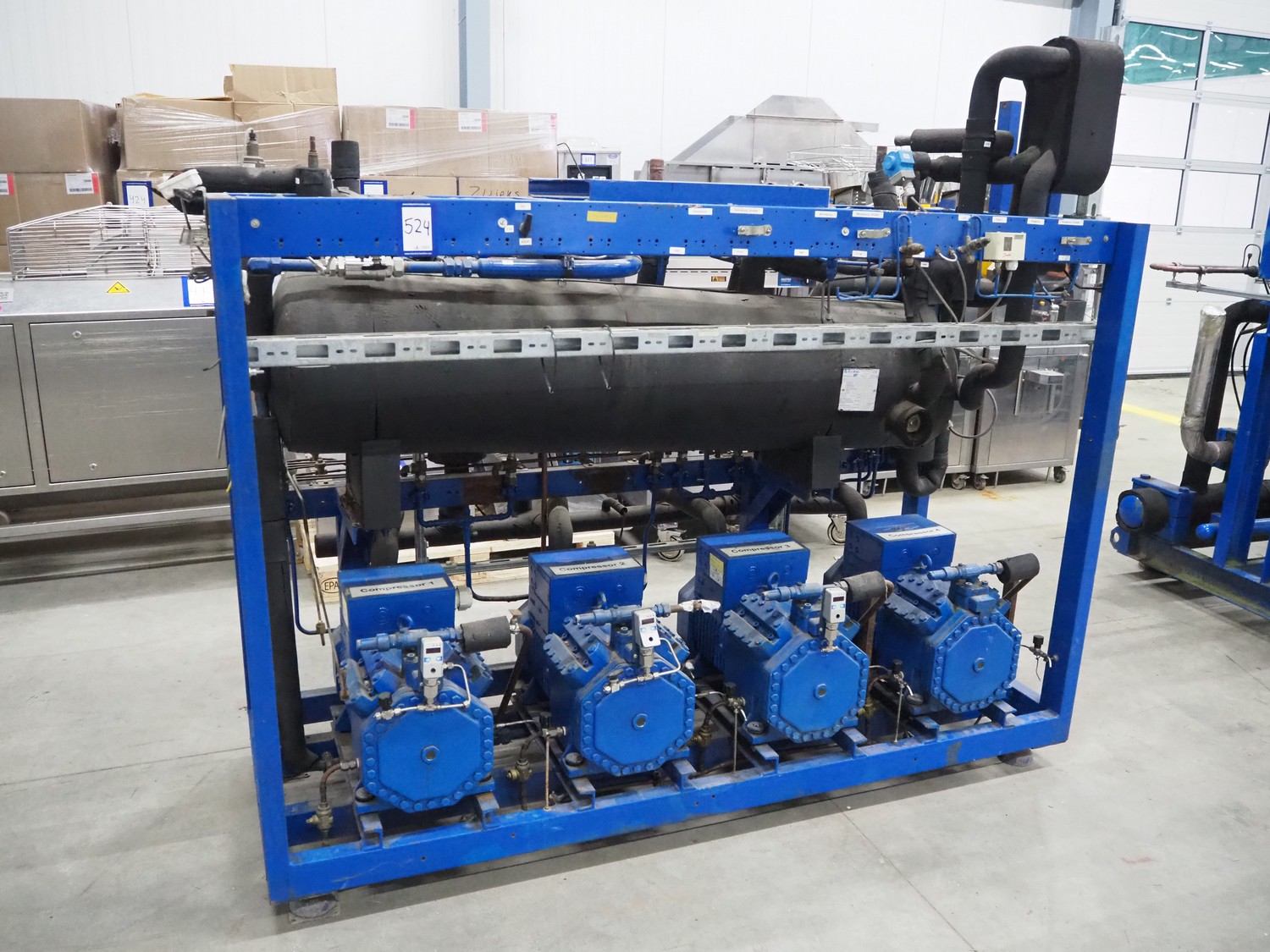 Bitzer Kühlmaschinenbau GmbH compressorrack with 4 Bitzer Kühlmaschinenbau GmbH cooling compressors, type: (3x) 4JTC-10KY-40P, 4JTC-10KY-40S, serial number: 1672506278, 1672504853, 1672504854, 1672504851, capacity: (4x) 9/10.9 m³ per hour, dimensions: 2200 mm x 1150 mm x 1950 mm.