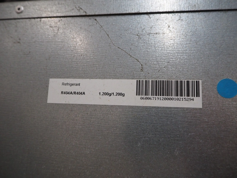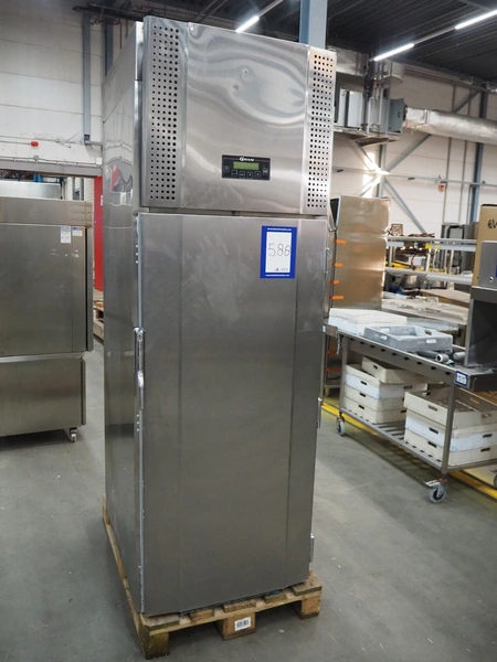Gram blast chiller, type: KPS 60 CH, serial number: 10215294, 400 V, 50 Hz, 11.64 A, 2331 W, refrigerant: R404A/1.200g, dimensions inside: 820 mm x 430 mm x 1550 mm, total dimensions: 1030 mm x 800 mm x 2220 mm.