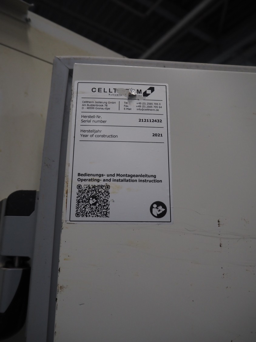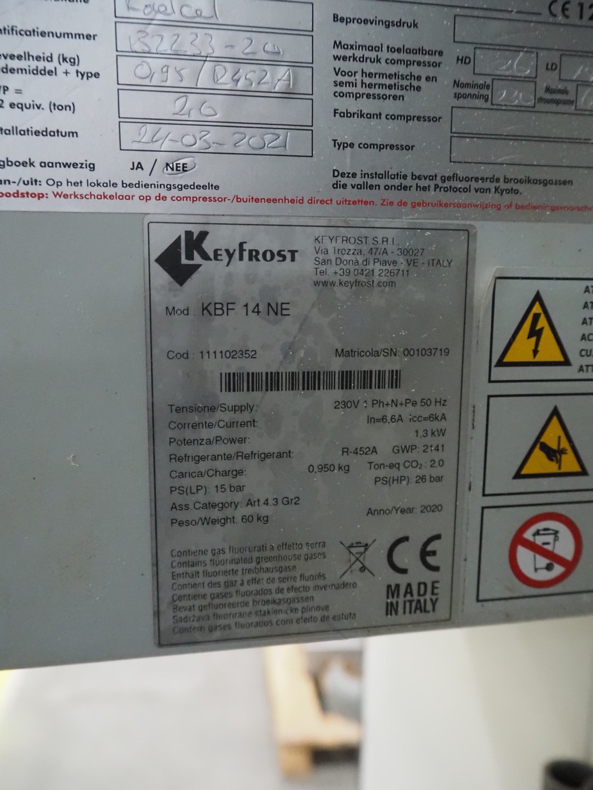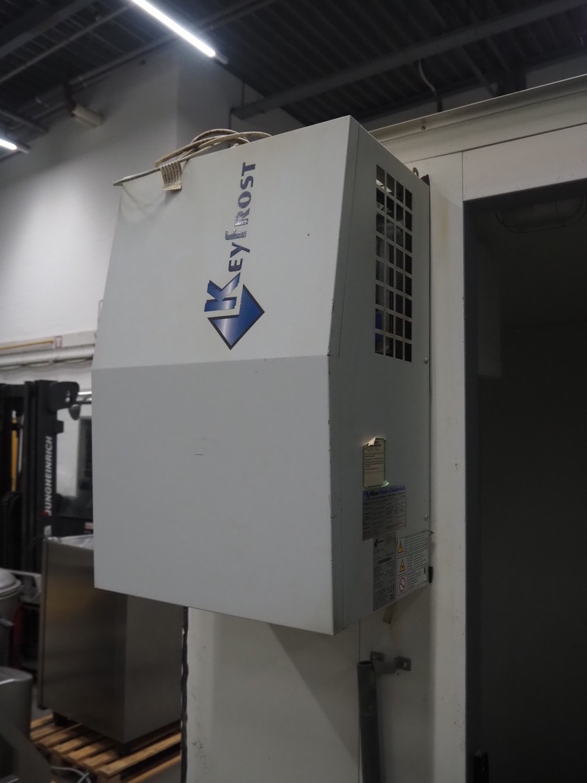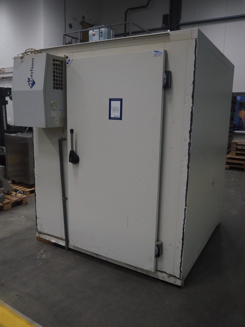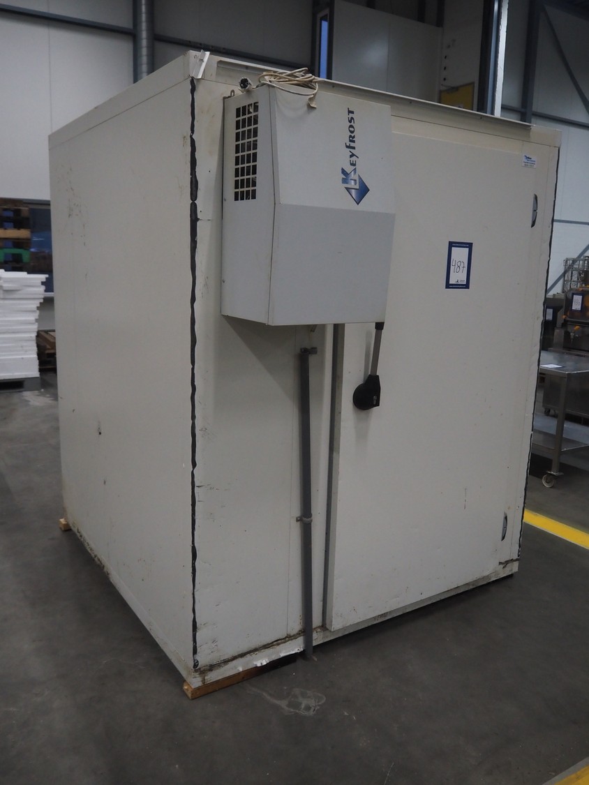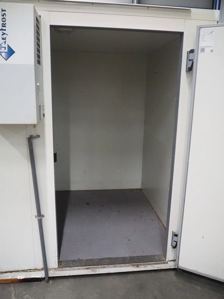 Cooling cell with Keyfrost wall mounted cooling unit, inside dimensions: 1700 mm x 1760 mm x 2100 mm, Keyfrost cooling unit, model: KBF 14 NE, serial number: 00103719, year of construction: 2020, 230 V, 1 Ph, 50 Hz, 6.6 A, 1.3 kW, 26 bar, weight: 60 kg, total dimensions: 2200 mm x 1850 mm x 2180 mm.
