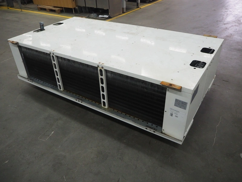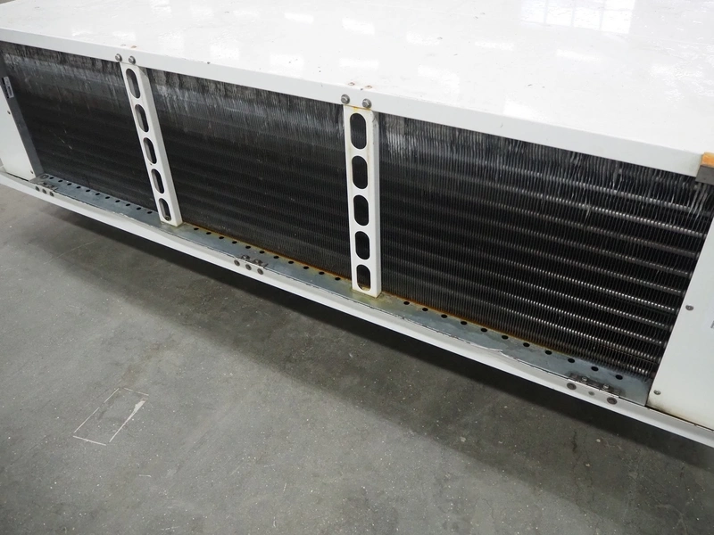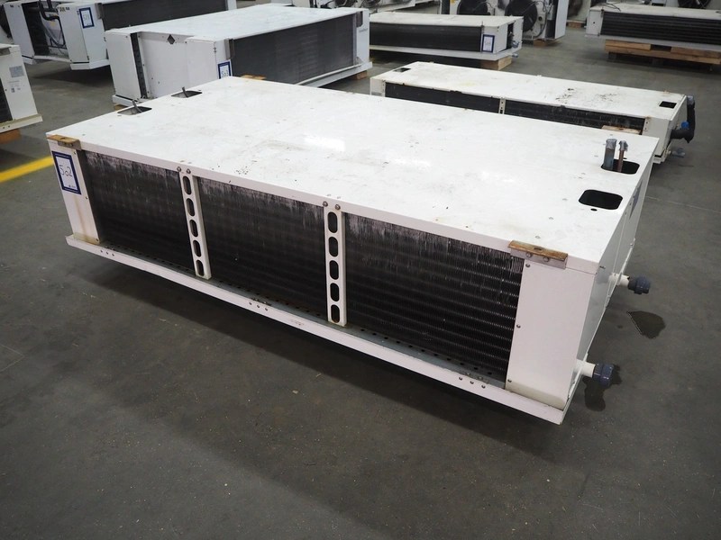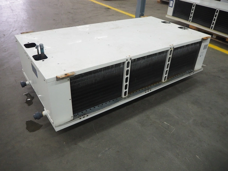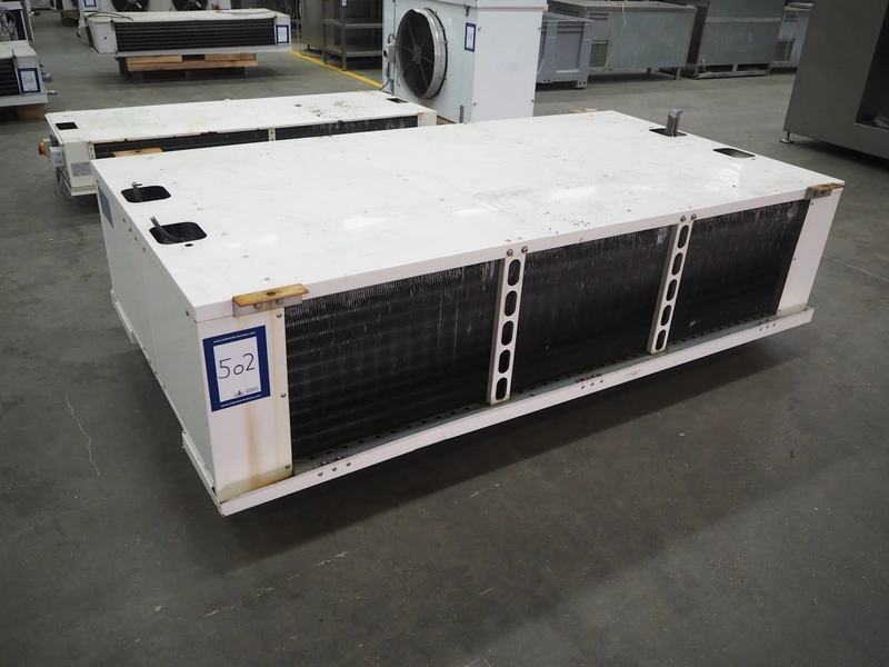 GEA Searle evaporator, 2 fans, model: LSR123-66-8D, serial number: 1104393, 400 V, 3 Ph, 50 Hz, 14300 W, maximum work pressure: 21 bar, volume: 38.6 liter, weight: 272 kg, dimensions: 2550 mm x 1400 mm x 930 mm.