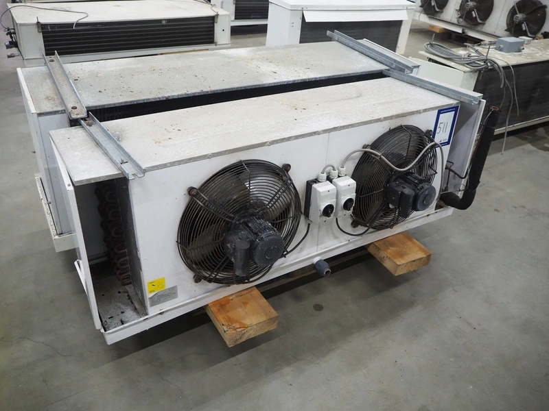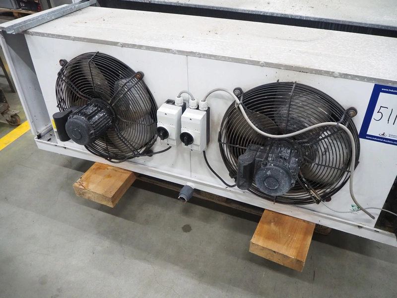 Alfa Laval evaporator, 2 fans, type: LEX 22-7 230, serial number: SA-1207-0400002603-10648-30367, year of construction: 2012, maximum temperature: -55/63 ⁰C, maximum pressure: 25 bar, volume: 20.4 liter, weight: 111 kg, dimensions: 1850 mm x 730 mm x 700 mm.