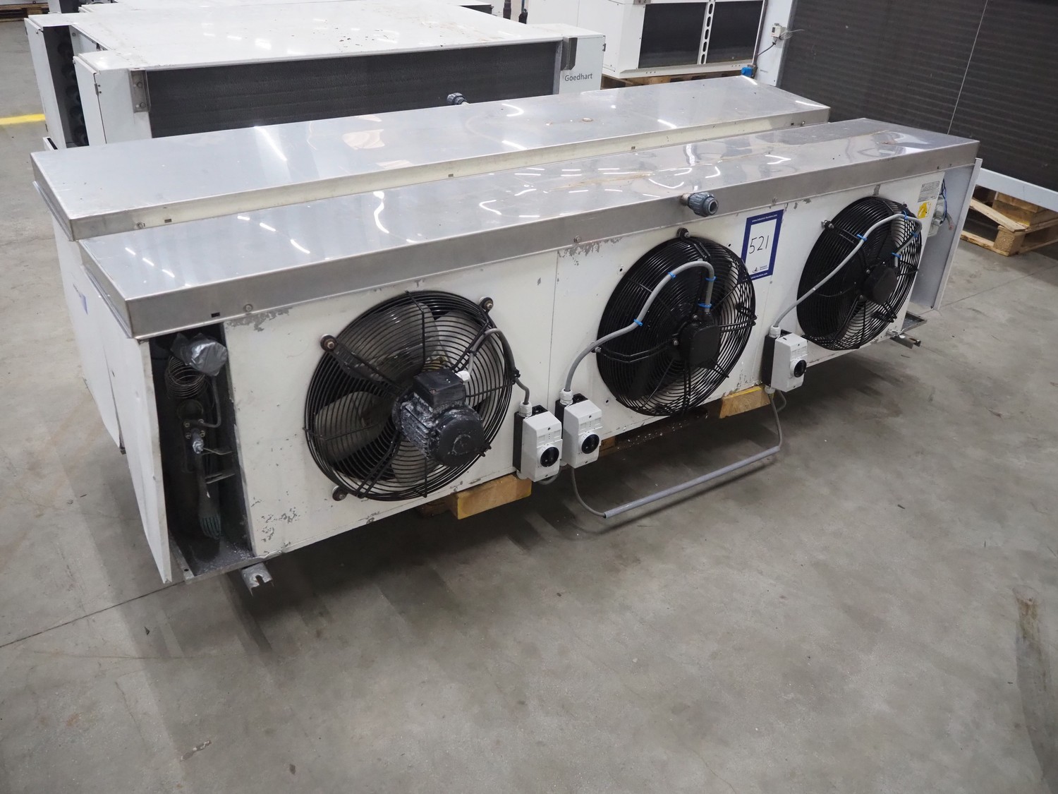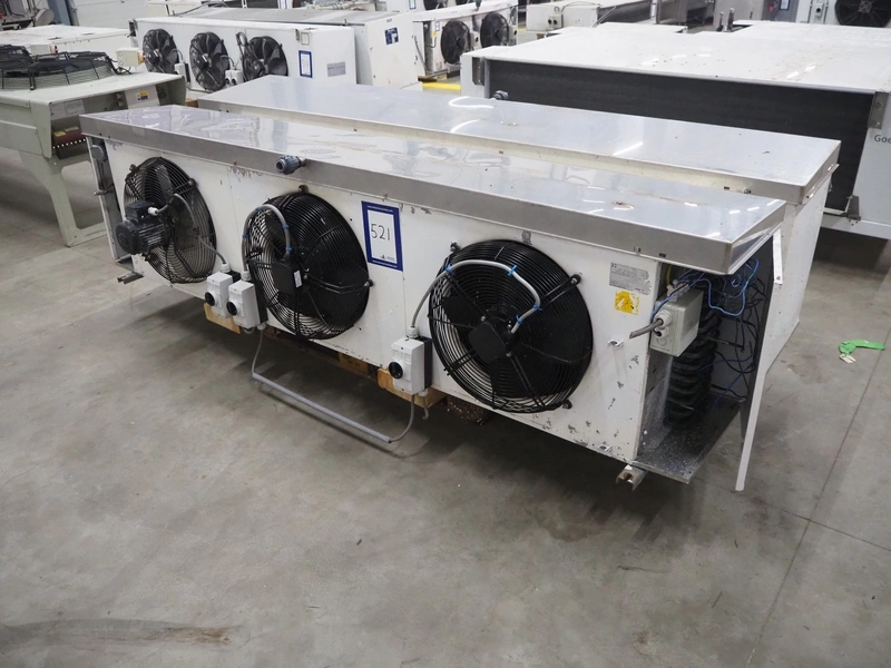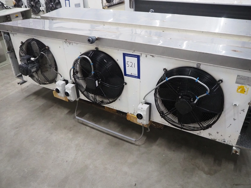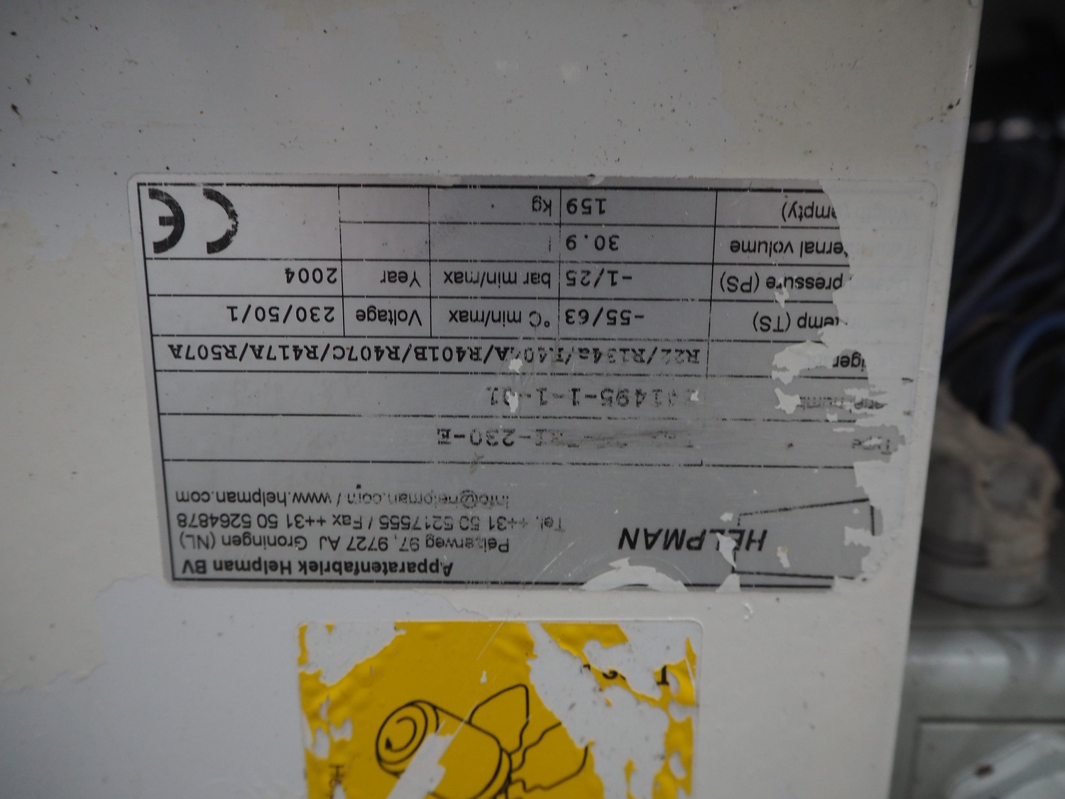 Helpman evaporator, 3 fans, year of construction: 2004, 230 V, 1 Ph, 50 Hz, maximum temperature: -55/63 ⁰C, maximum pressure: 25 bar, volume: 30.9 dm³, weight: 159 kg, dimensions: 2650 mm x 700 mm x 700 mm.