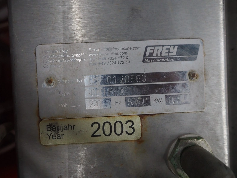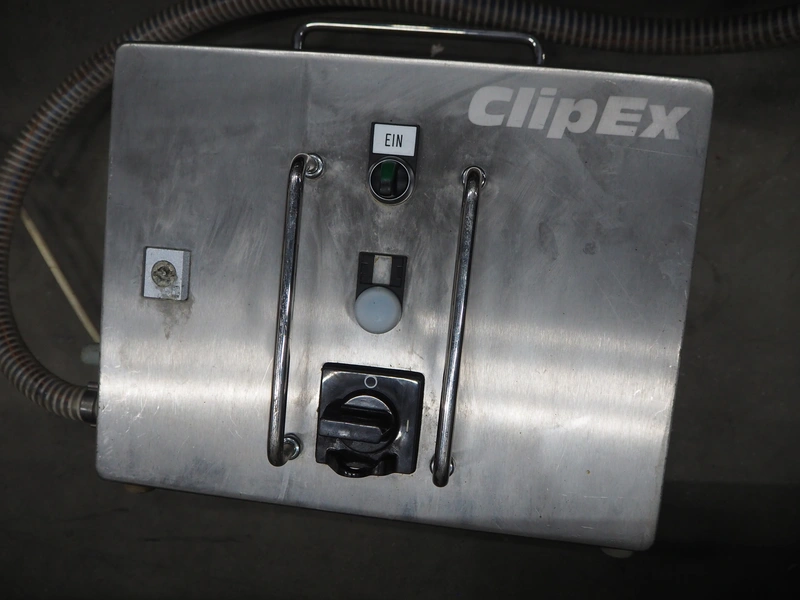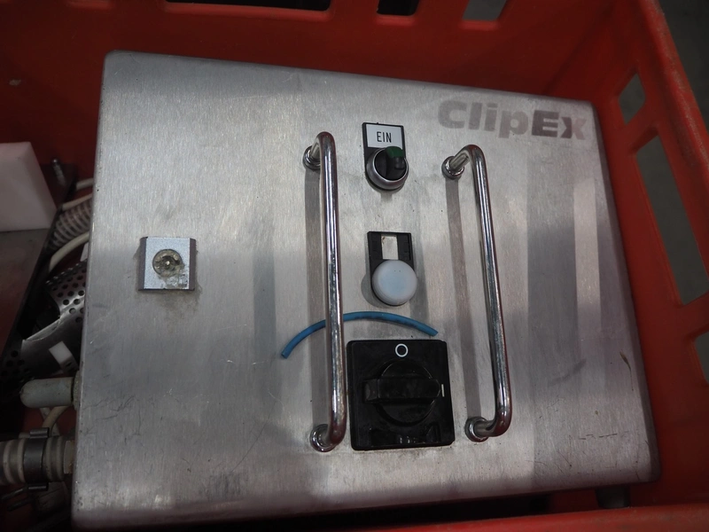 Frey Maschinenbau casing sealer, type: CLIPEX, machine number: CX 0130863, year of construction: 2003, 220 V, 50/60 Hz, 0.7 kW, dimensions: 370 mm x 300 mm x 150 mm