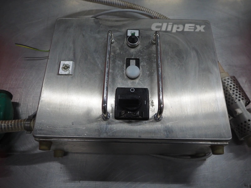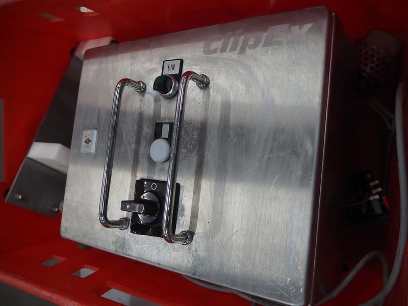 Frey Maschinenbau casing sealer, type: CLIPEX, machine number: CX 0130853, year of construction: 2003, 220 V, 50/60 Hz, 0.7 kW, dimensions: 370 mm x 300 mm x 150 mm