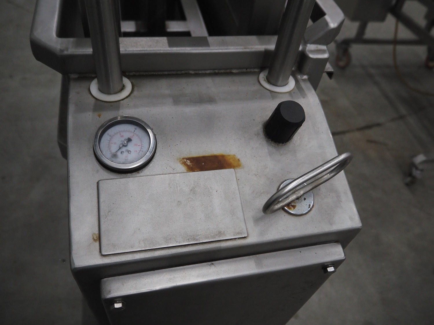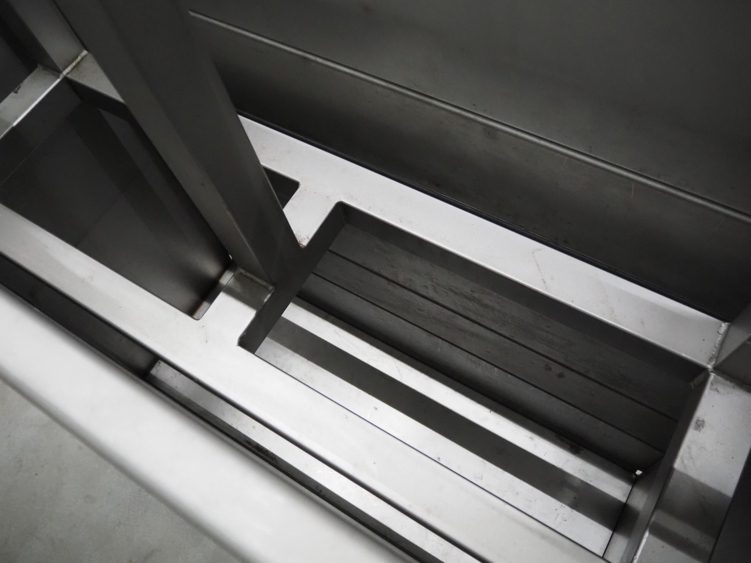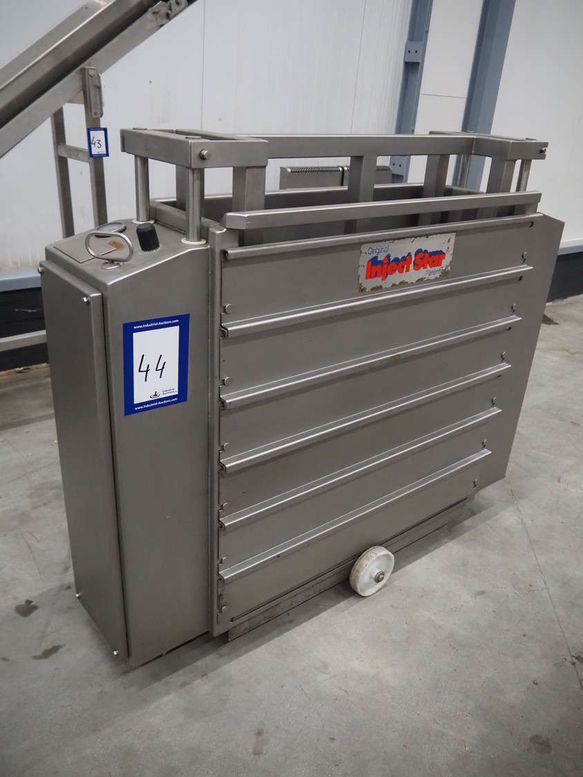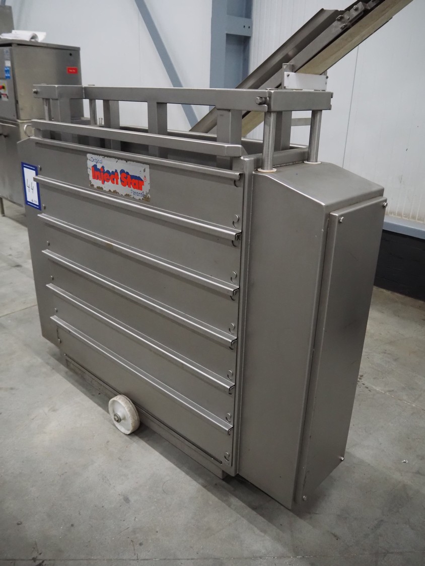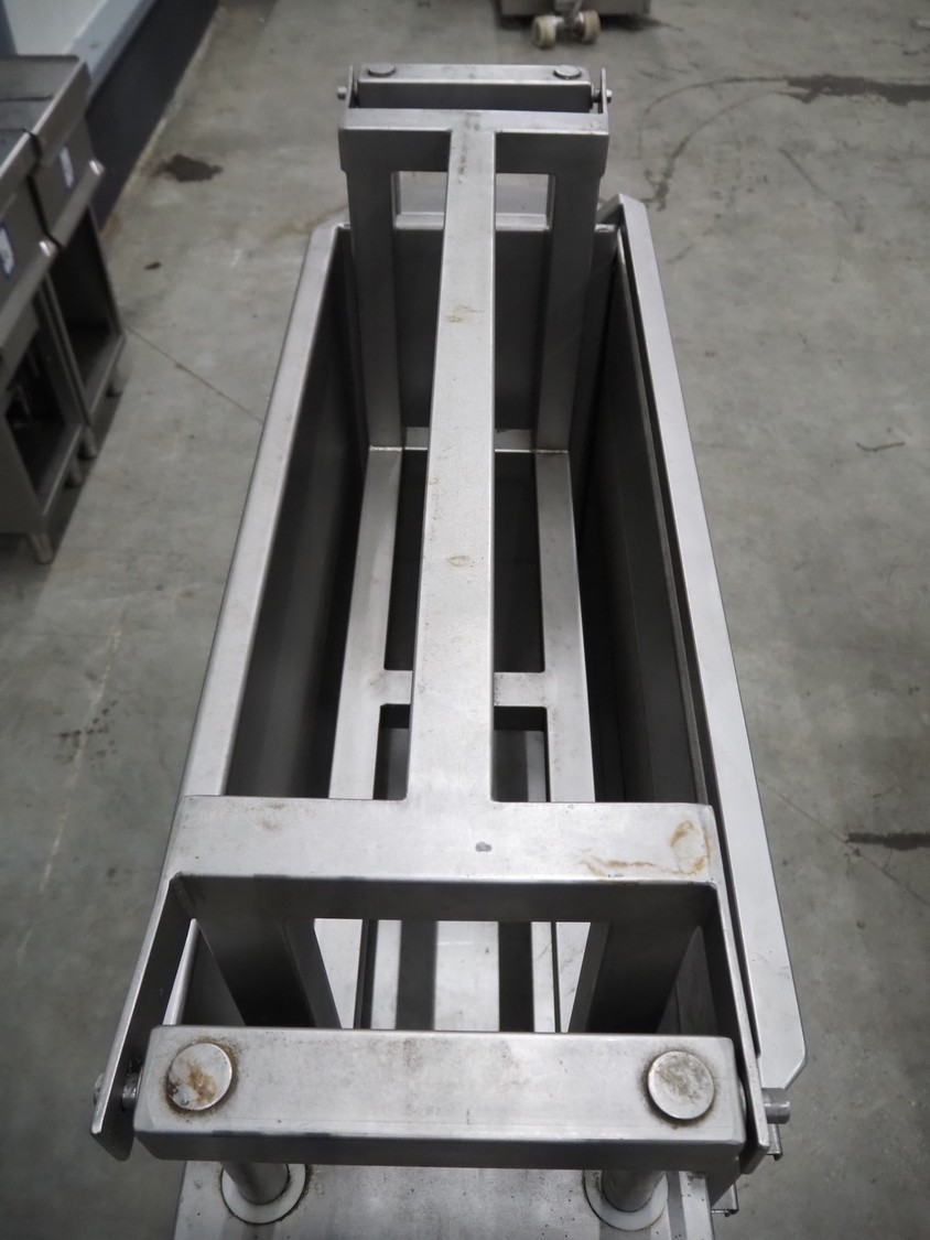 Inject Star mobile ham press, inside dimensions: 1000 mm x 350 mm, total dimensions: 1600 mm x 450 mm x 1340 mm.