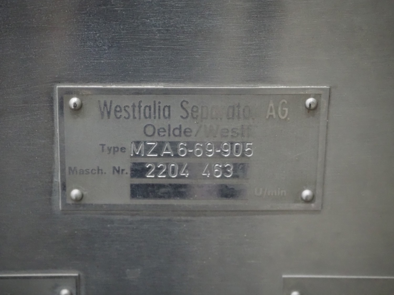 Westfalia Separator AG separator, type: MZA 6-69-905, machine number: 2204 463, dimensions: 900 mm x 800 mm x 1100 mm.