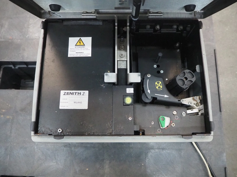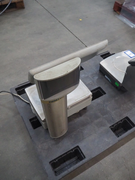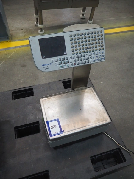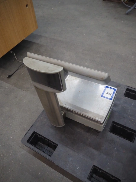 CZB weighing scale with label printer, model: EQUA 5000, serial number: 120950249, 110/230 V, 50/60 Hz, 24 W, maximum capacity: 12 kg, minimum capacity: 40 g, e= 2 g, T = -9.998 kg, dimensions: 500 mm x 360 mm x 480 mm.