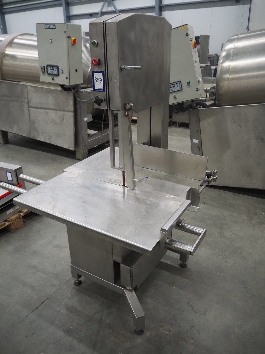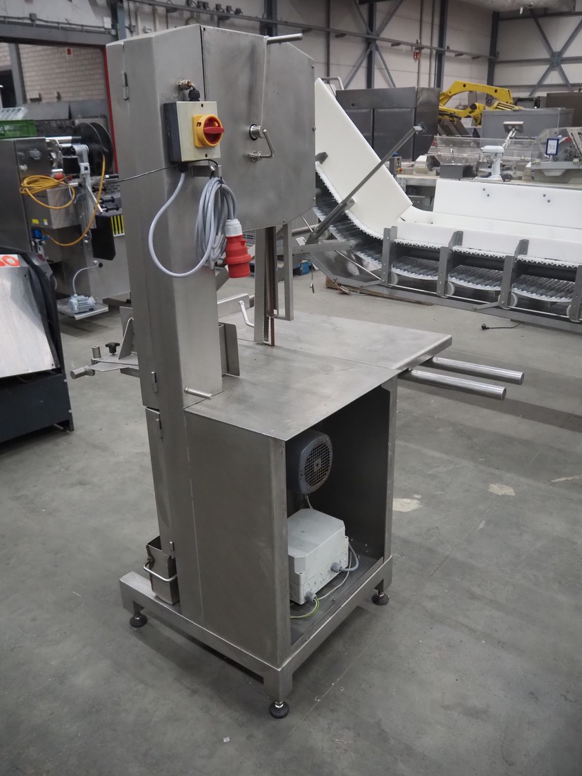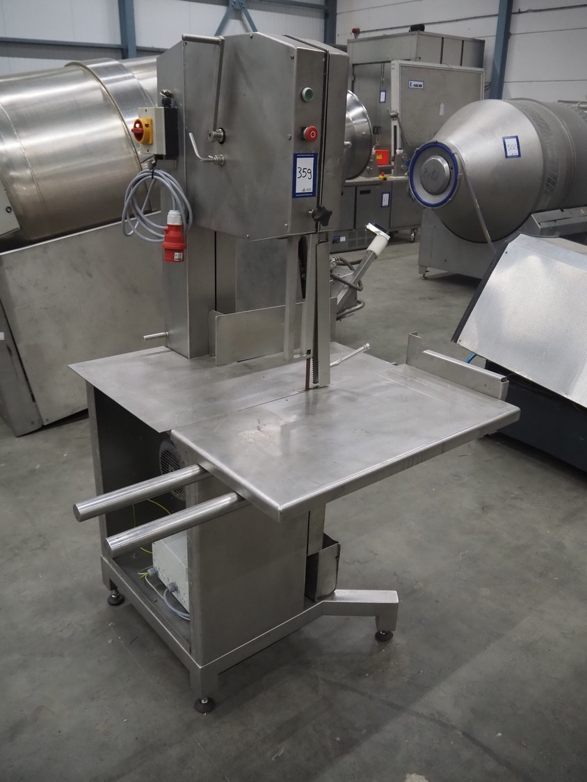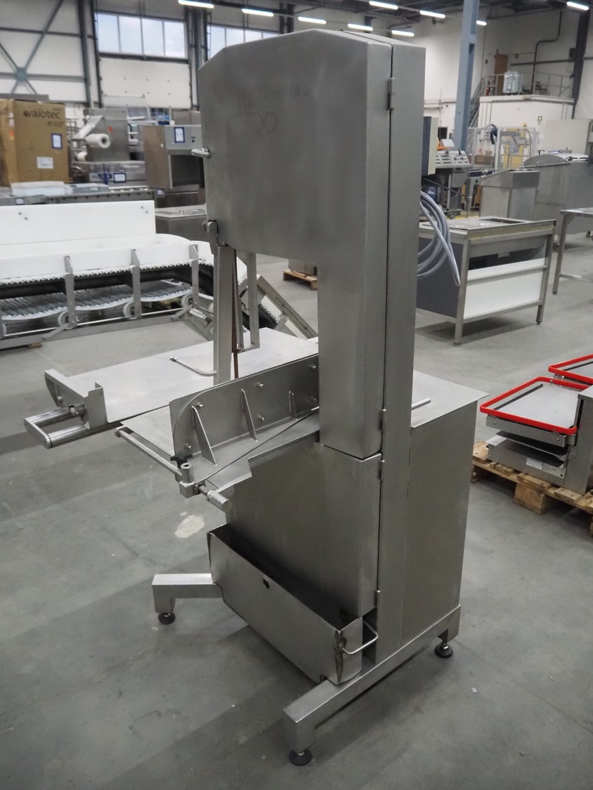 Mado bandsaw, type: MKB 654, serial number: 30404, year of construction: 2003, 230/400 V, 3 Ph, 50 Hz, 8.6/5.0 A, table dimensions: 850 mm x 720 mm, total dimensions: 1300 mm x 1000 mm x 1800 mm. Missing cover.