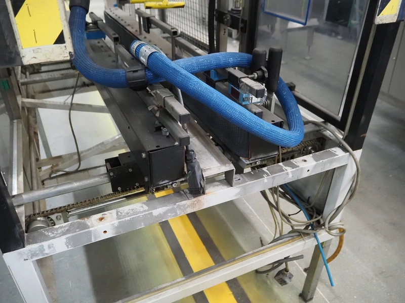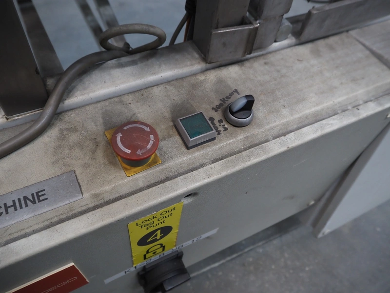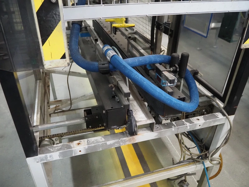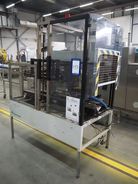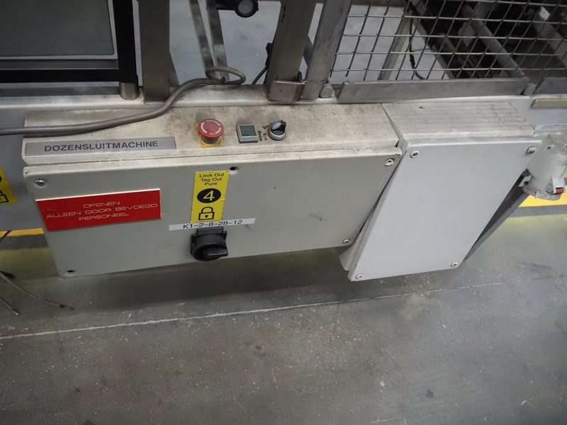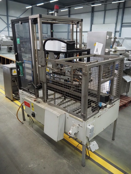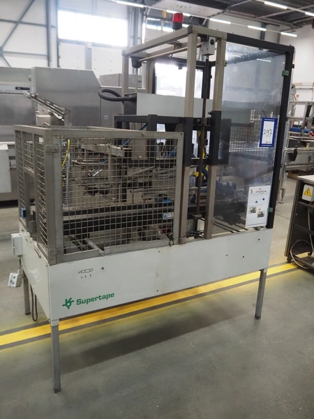 Supertape box closing machine, type: HF-7, machine number: 95-74301, year of construction: 1995, 400 V, 3 Ph, 50 Hz, 4.5 A, weight: 195 kg, dimensions: 1700 mm x 1050 mm x 2200 mm.