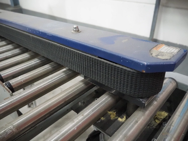 Youngsunpack box closing machine, type: MH-FJ-1A, serial number: 130508C S1-03, year of construction: 2012/2013/2014, 220 V, 1 Ph, 50 Hz, 600 W, aluminium rollers, roller width: (14x) 280 mm and (8x) 680 mm, total dimensions: 1100 mm x 800 mm x 900 mm. Incomplete.
