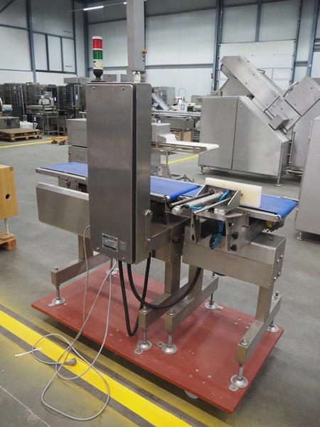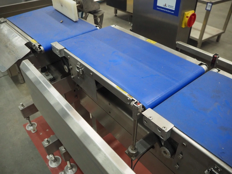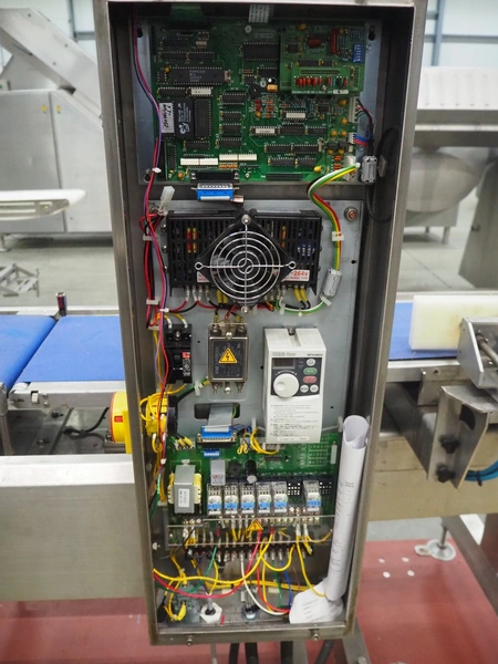 Fine Interkorea checkweigher with rejecter, model: FAC-5500 W335 535, serial number: E065031, year of construction: 2006/06, weight range: 1-500 gram, plastic belt, belt width: 300 mm, total dimensions: 1670 mm x 900 mm x 1630 mm.