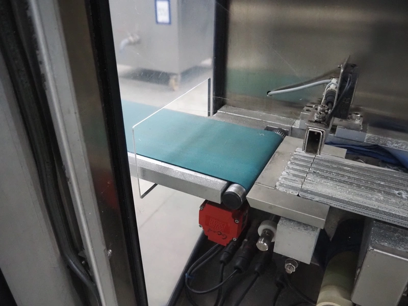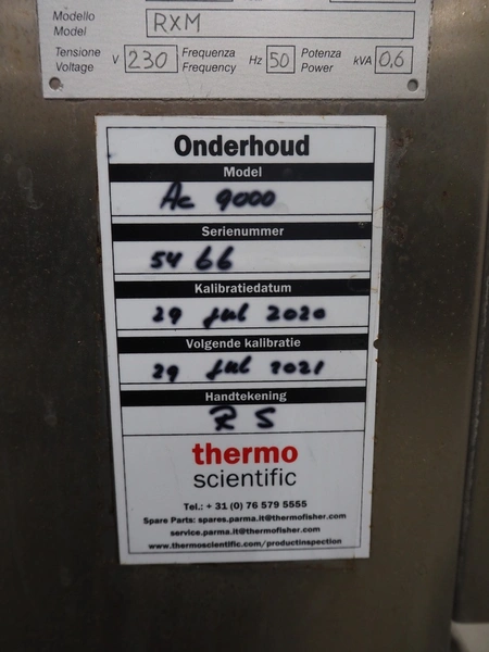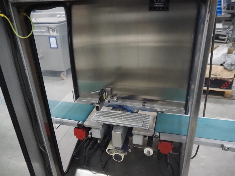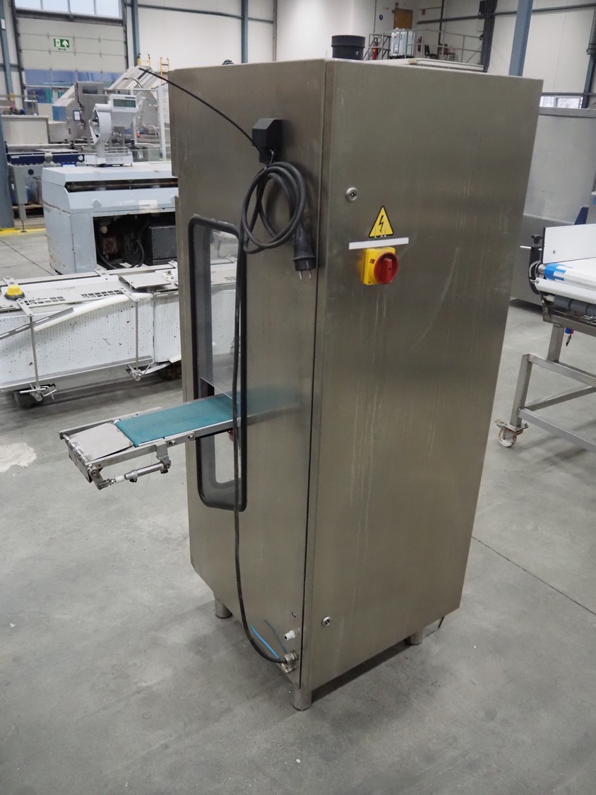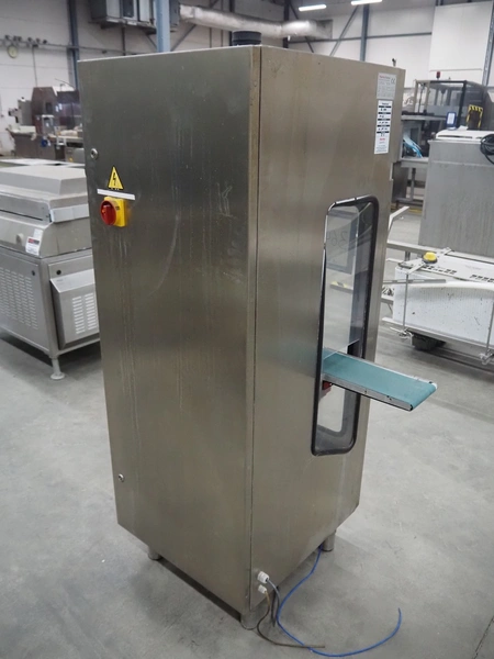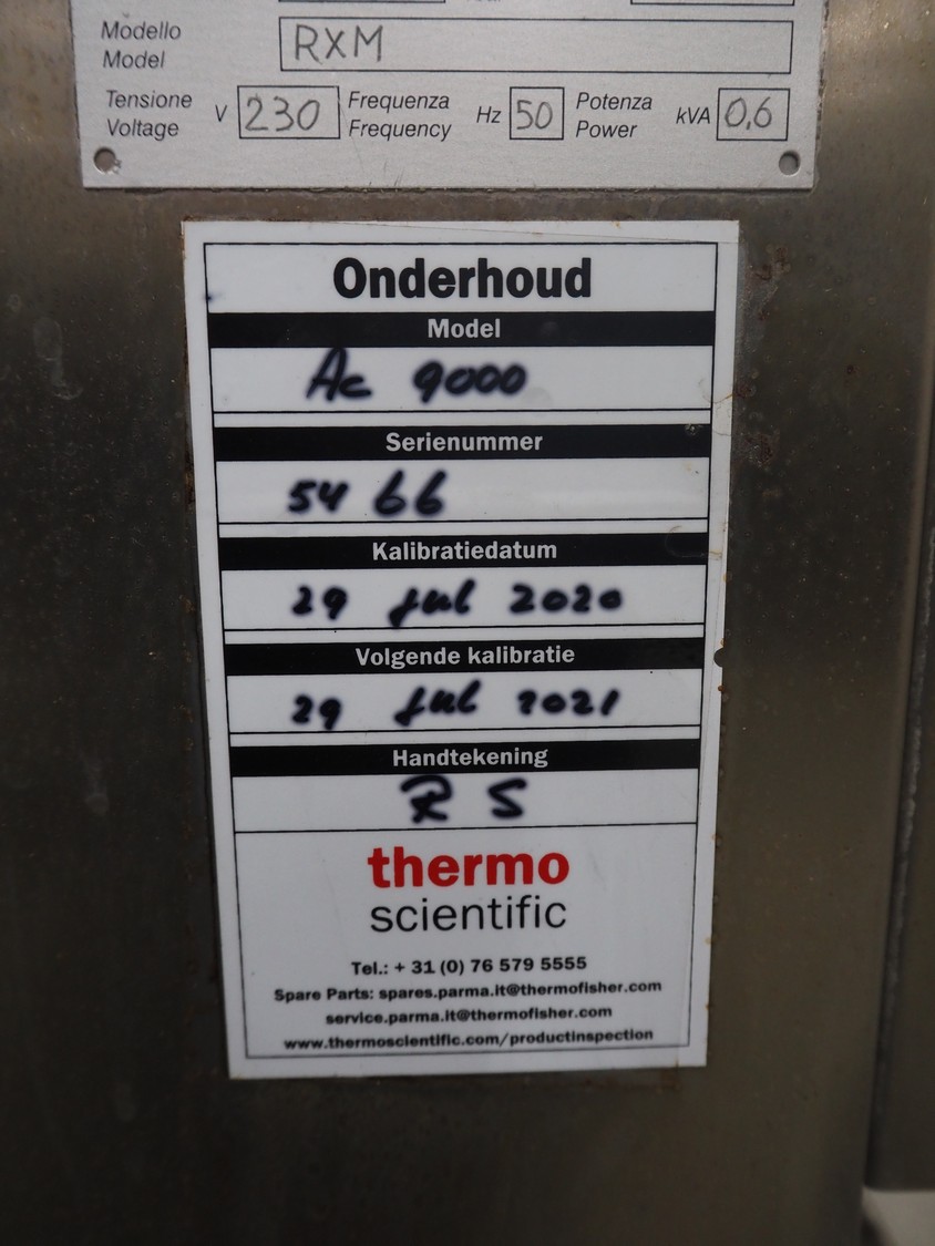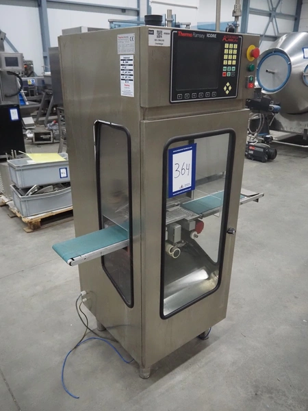 Thermo Ramsey checkweigher, model: RXM, serial number: 5466, year of construction: 2003, 230 V, 50 Hz, 0.6 kVA, plastic belt, belt width: 140 mm, total dimensions: 1260 mm x 670 mm x 1700 mm.