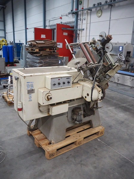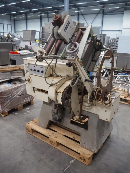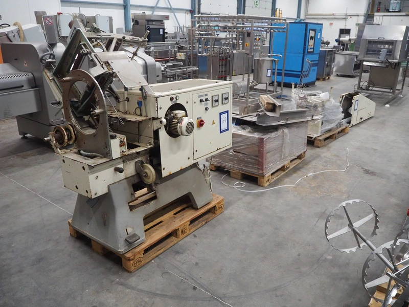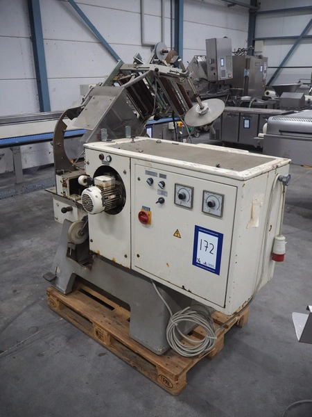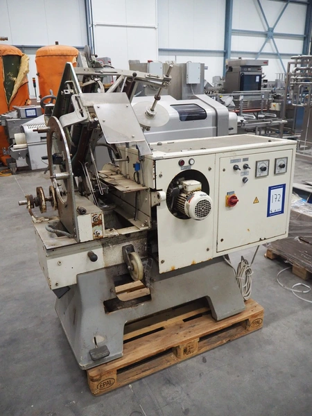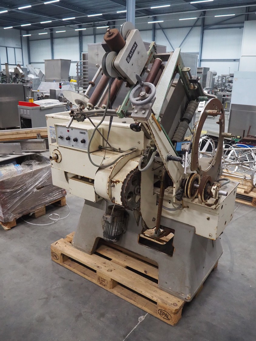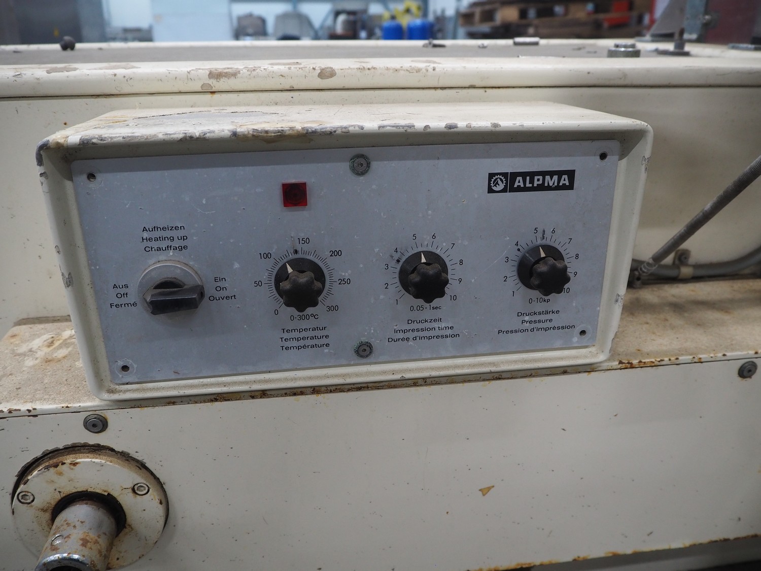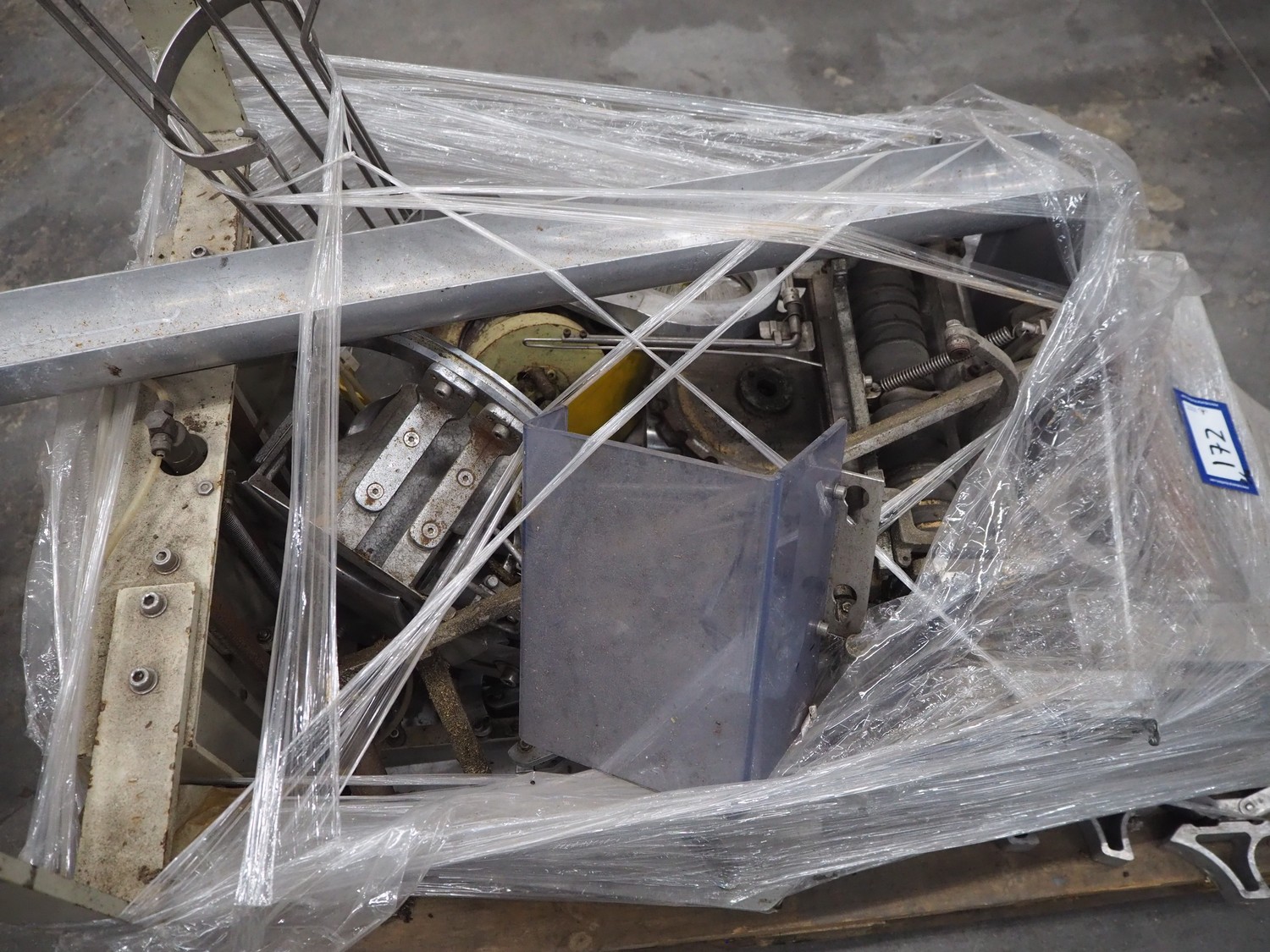 Alpma cheese packaging machine, type: U-64/D, fabrication number: 6450.214.339, year of construction: 1988, capacity: 50 per minute, weight: 900 kg, dimensions: 1800 mm x 900 mm x 1600 mm. Including 2 pallets with parts.