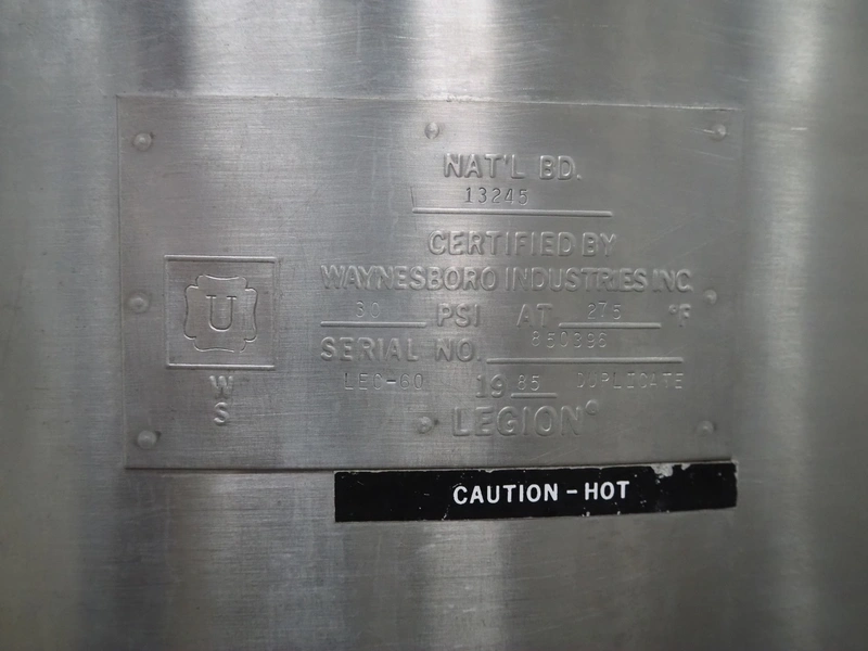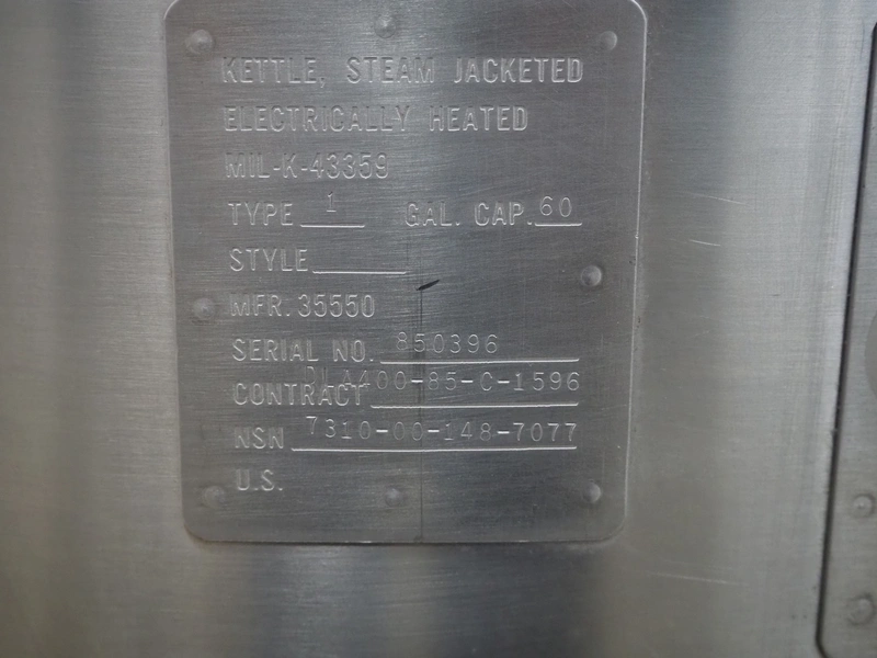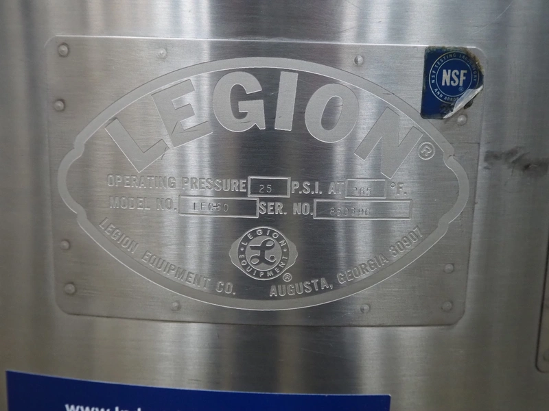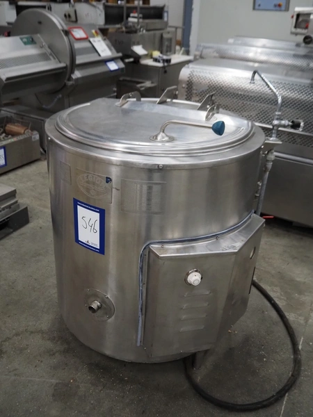 Legion cooking vessel, model: LEC-60, serial number: 850396, double jacketed, electric heated, volume: 60 liter, dimensions: Ø 1000 mm x 1200 mm.
