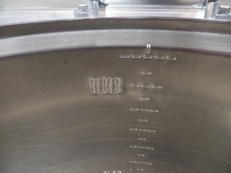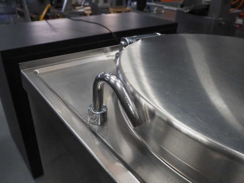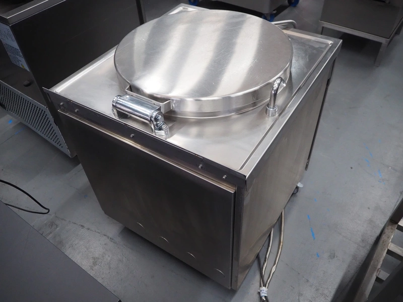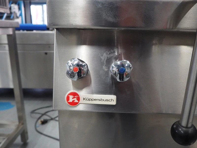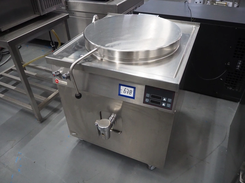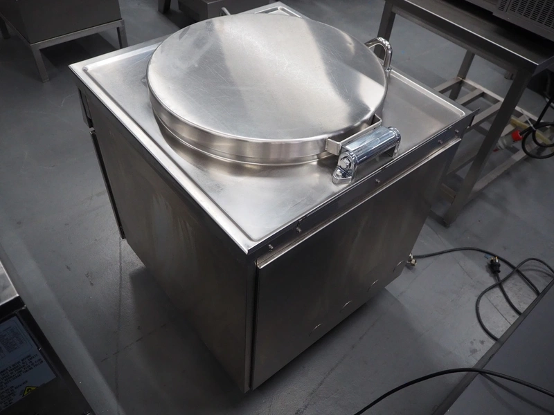 Küpperbusch cooking vessel, inside dimensions: Ø 590 mm x 460 mm, total dimensions: 800 mm x 940 mm x 980 mm.