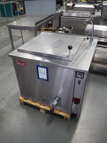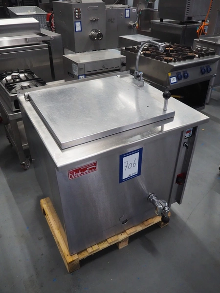 Delrue cooking vessel, model: A200A1, number: 20030911A, year of construction: 2003, 18.5 kW, inside dimensions: 620 mm x 620 mm x 540 mm, total dimensions: 900 mm x 940 mm x 1120 mm.