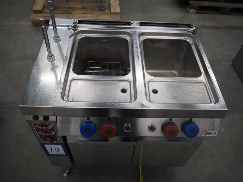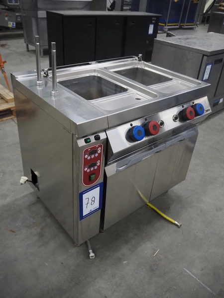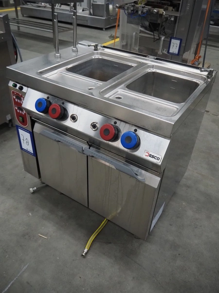 Jesco gas heated double cooking vessel, model: CPG72M01, serial number: 1911.0205, 18 kW, inside dimensions: (2x) 200 mm x 340 mm x 300 mm, total dimensions: 950 mm x 770 mm x 1150 mm.