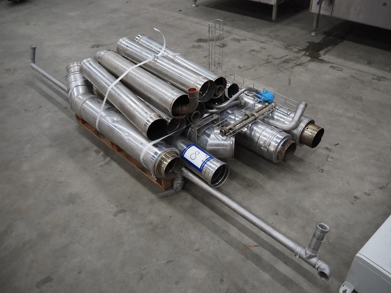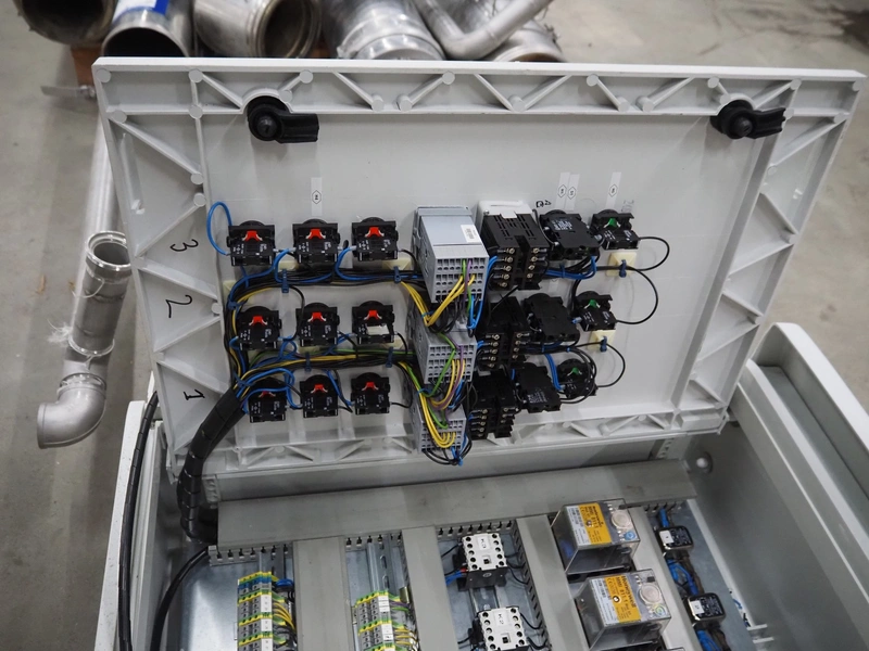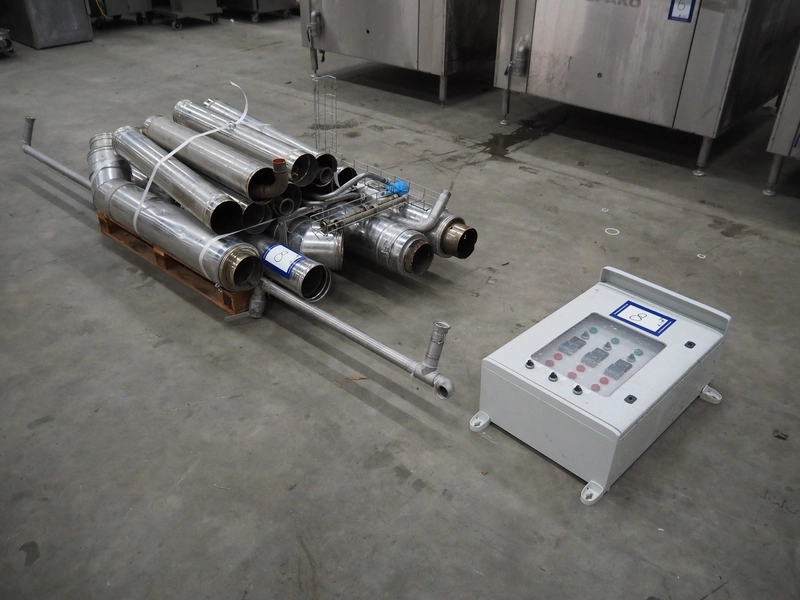 Spako parts for cooking vessel, dimensions switch cabinet: 830 mm x 570 mm x 330 mm, dimensions pallet with parts: 3450 mm x 1000 mm x 600 mm.