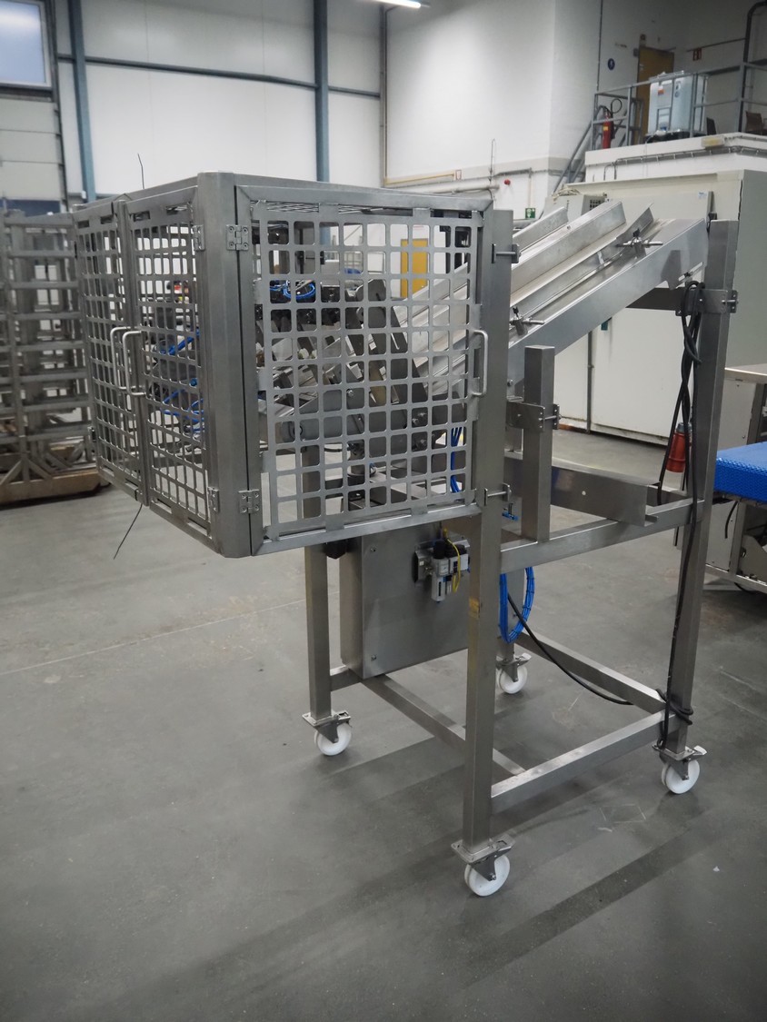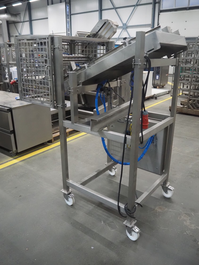 Dörr Kampen BV mobile tray denester, type: verpakkingsmachine, serial number: 51879-526, year of construction: 2019, 400 V, 3 Ph, 50 Hz, 200 W, dye: (2x) 230 mm x 170 mm, total dimensions: 1500 mm x 900 mm x 1800 mm.