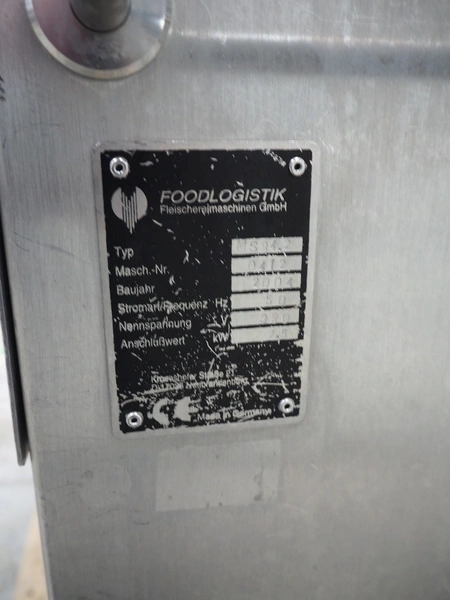 Food Logistik GmbH mobile dicer, type: MS84.2, machine number: 0412, year of construction: 2004, 380 V, 50 H, 2.5 kW, dimensions chamber: 290 mm x 90 mm x 200 mm, grid with 13 knifes, distance between knifes: 5 mm, total dimensions: 1300 mm x 650 mm x 1080 mm.