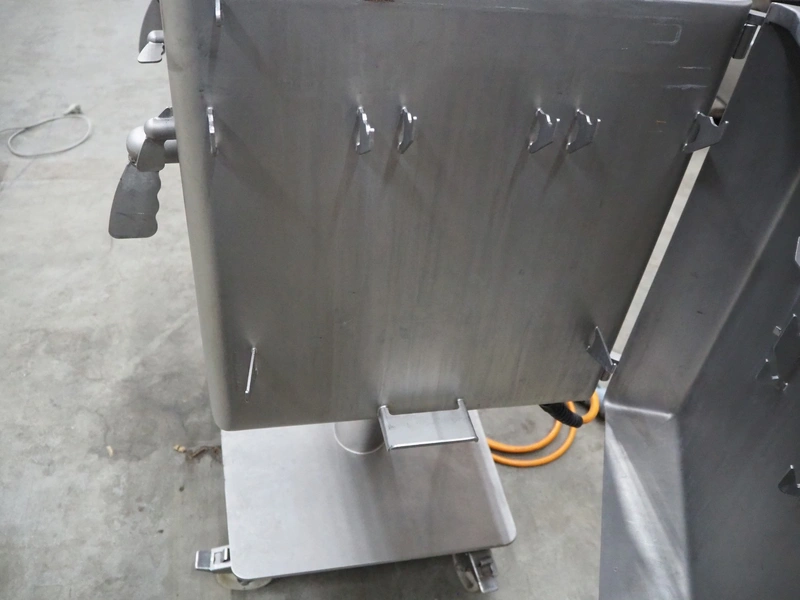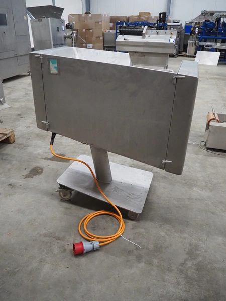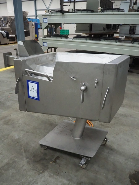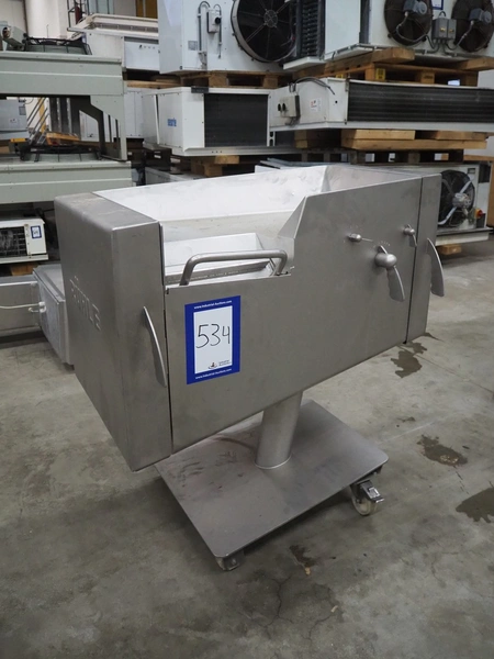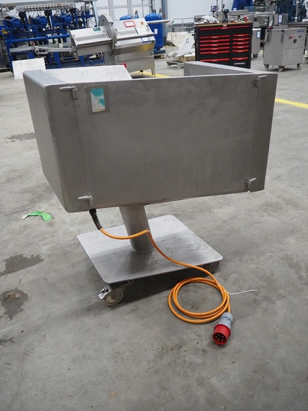 Rühle mobile dicer, type: SR 1, number: 813, year of construction 1999, 400 V, 50 Hz, dimensions chamber: 100 mm x 100 mm, distance between knifes: 5 mm, total dimensions: 1000 mm x 700 mm x 1100 mm.