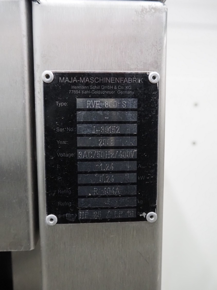 Maja-Maschinenfabrik flake ice machine, type: RVE 800 S, serial number: I-39152, year of construction: 2008, 400 V, 3 Ph, 50 Hz, refrigerant: R 404A, roller width: 340 mm, total dimensions: 1350 mm x 700 mm x 1430 mm.
