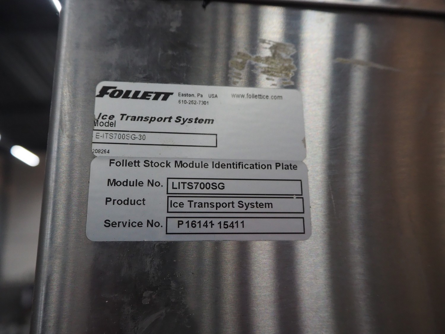 Follett ice machine, model: E-ITS700SG-30, clearence: 570 mm x 270 mm, total dimensions: 1300 mm x 820 mm x 1900 mm.
