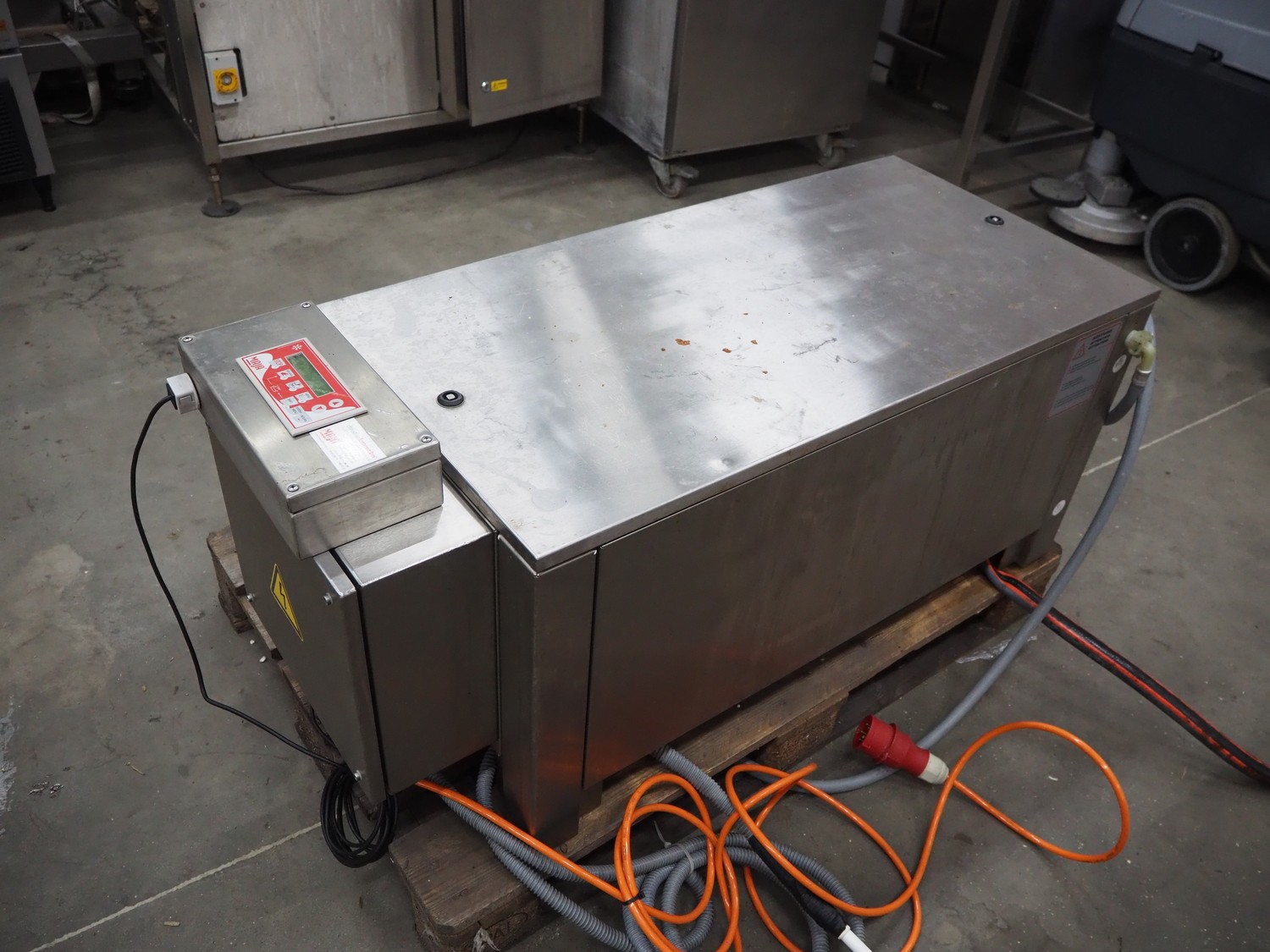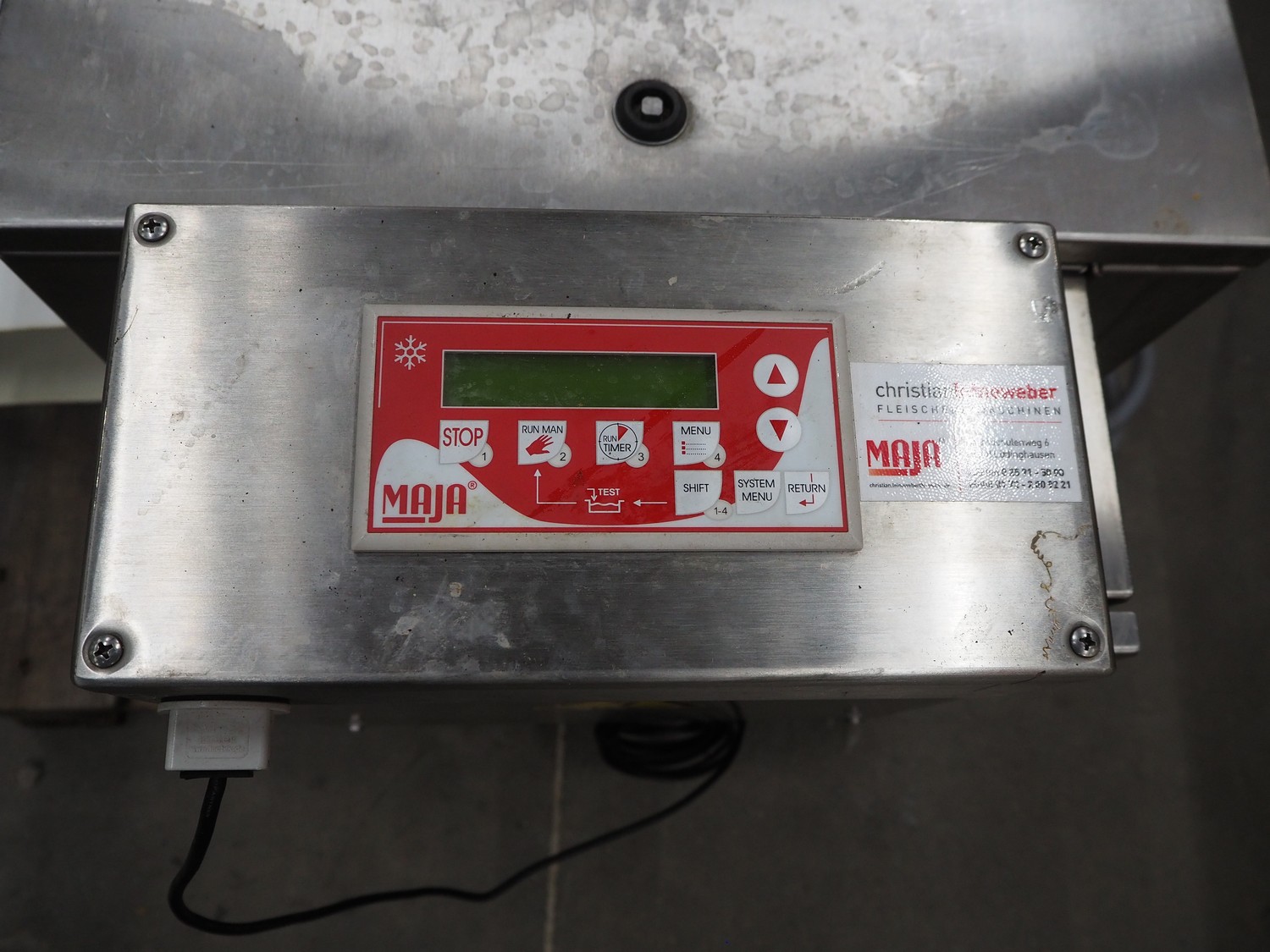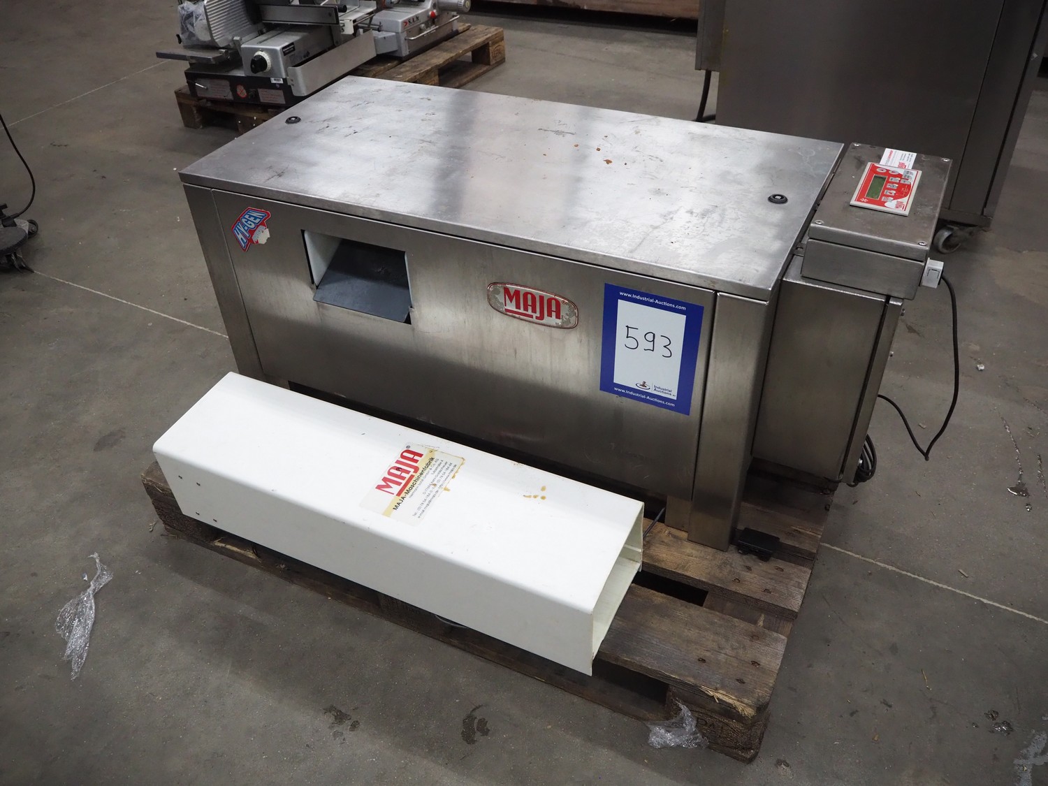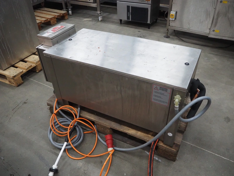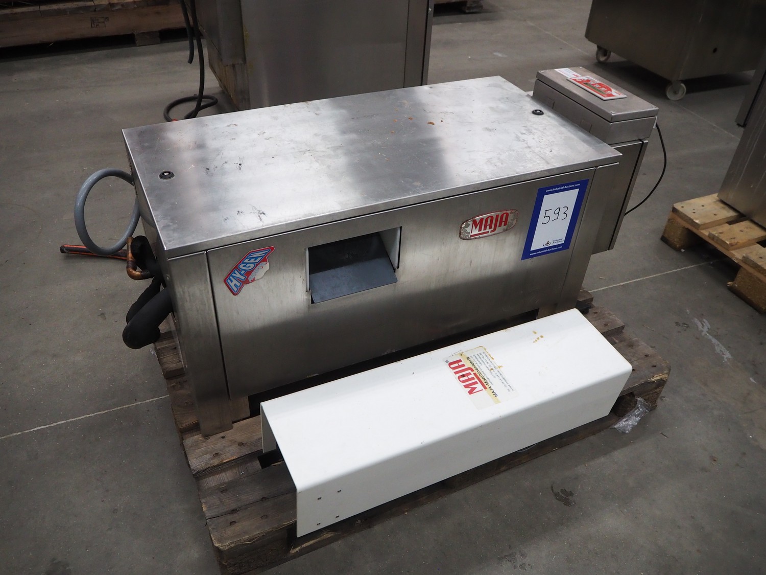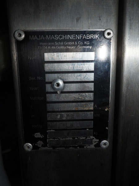 Maja-Maschinenfabrik flake ice machine, RVH 400, serial number: 1442414, year of construction: 2011, 400 V, 3 Ph, 50 Hz, 1.07 A, 0.24 kW, refrigerant: R404A, clearence: 195 mm x 105 mm, total dimensions: 1250 mm x 580 mm x 520 mm.