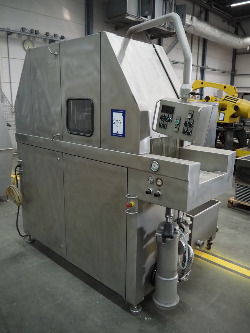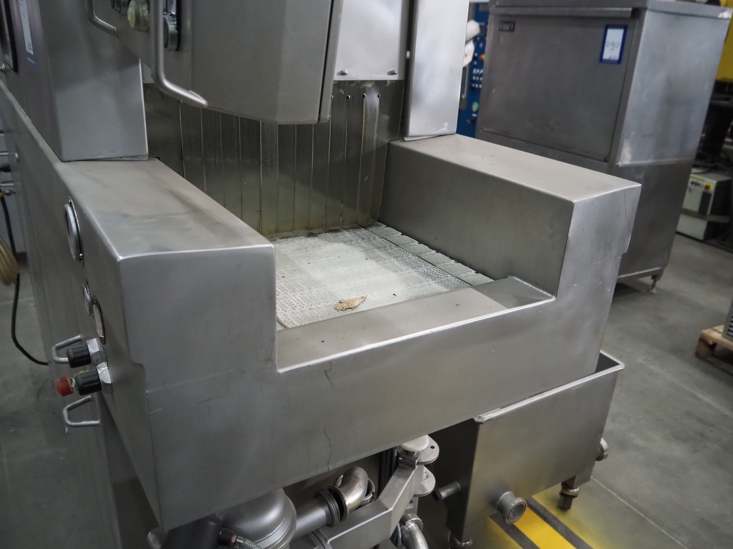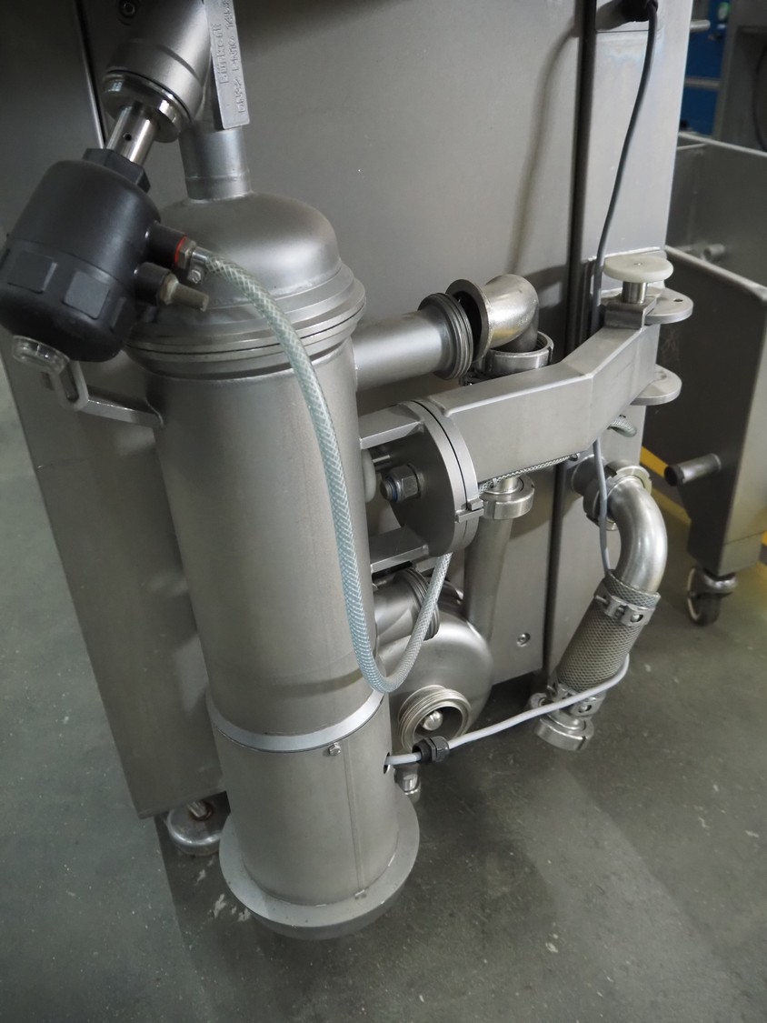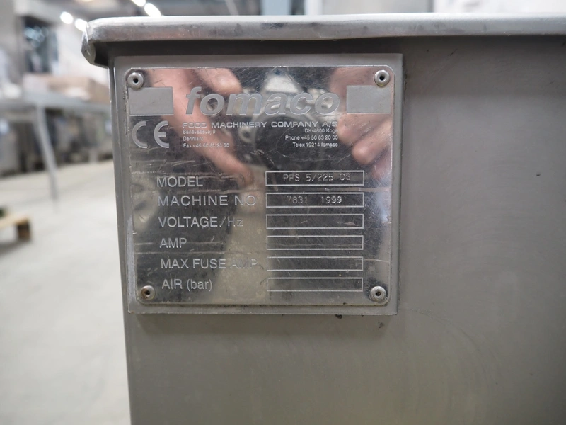 Fomaco injector, type: FGM 48 SC, machine number: 7829, year of construction: 1999, 400 V, 3 Ph, 50 Hz, 17-32 A, 6 bar, (2x) 48 needles, plastic mesh belt, belt width: 400 mm, dimensions injector: 1270 mm x 750 mm x 2200 mm. Including Fomaco mobile filter unit, model: PFS 5/225 CS, machine number: 7831, year of construction: 1999, dimensions filter unit: 1700 mm x 650 mm x 700 mm. Filter unit is incomplete.
