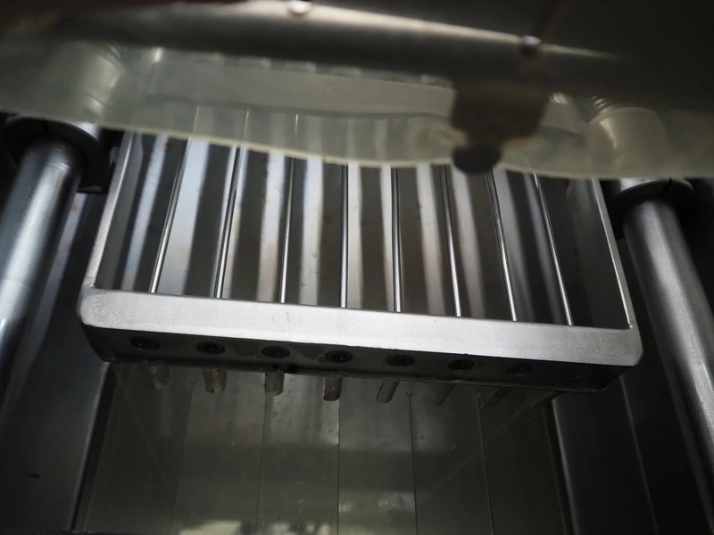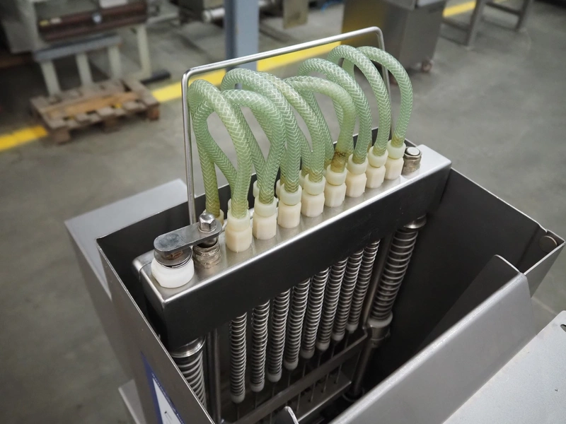 Rühle injector, type: PR 8, number: 2643, year of construction: 2005, 400 V, 3 Ph, 50 Hz, 16 A. 1.1 kW, s/s belt, belt width: 270 mm, working width: 250 mm, total dimensions: 1200 mm x 400 mm x 1600 mm.