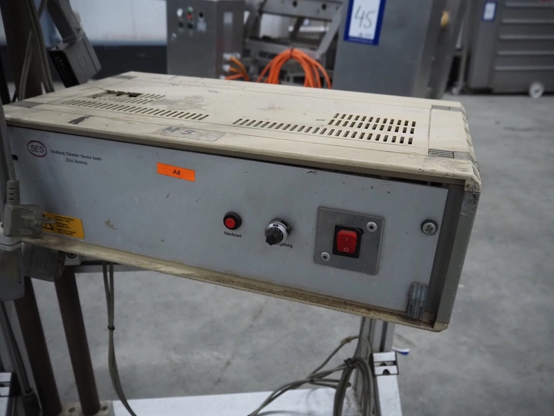 SES mobile labelling machine, dimensions: 750 mm x 750 mm x 1760 mm.