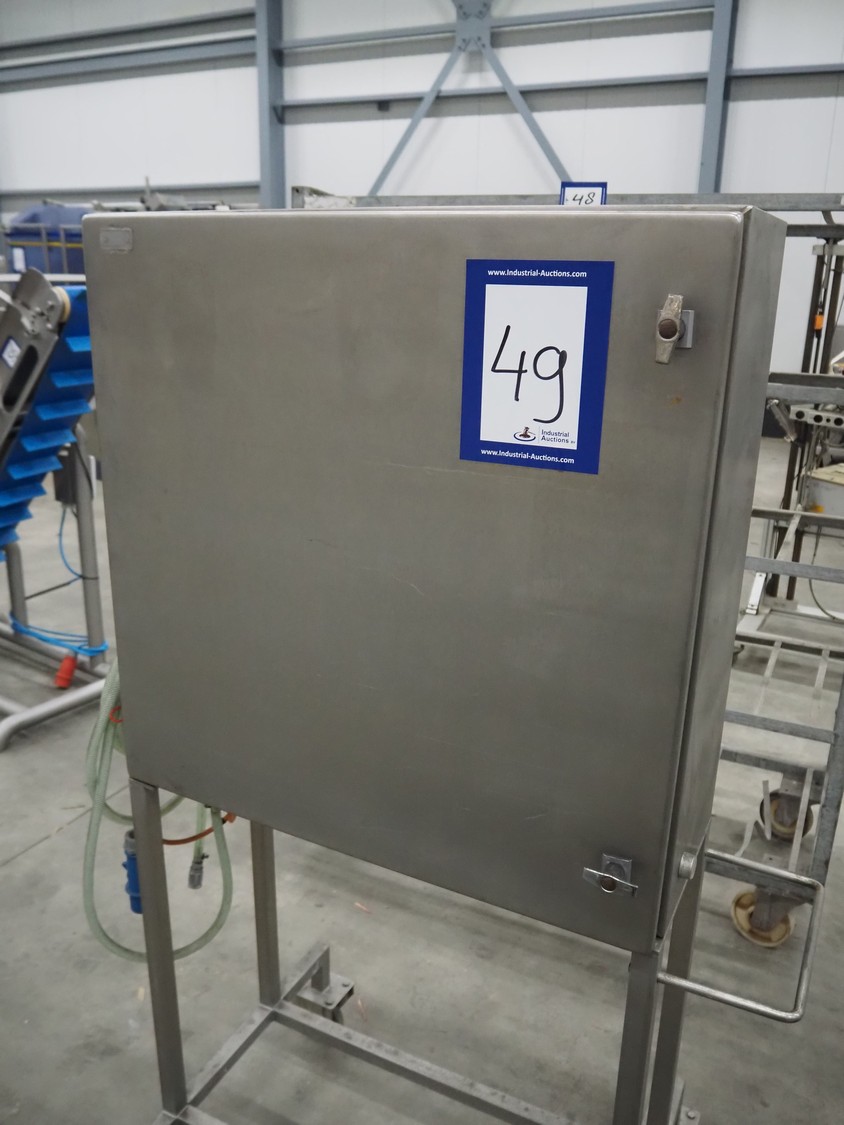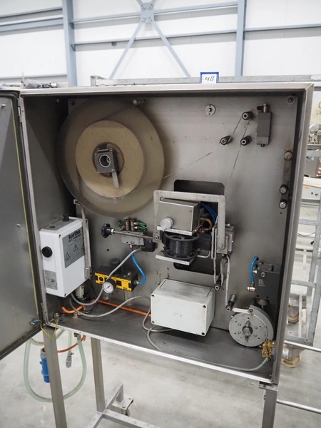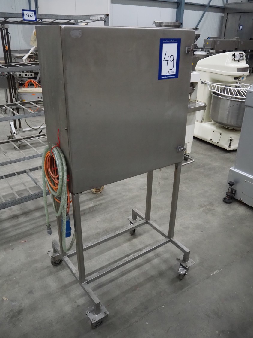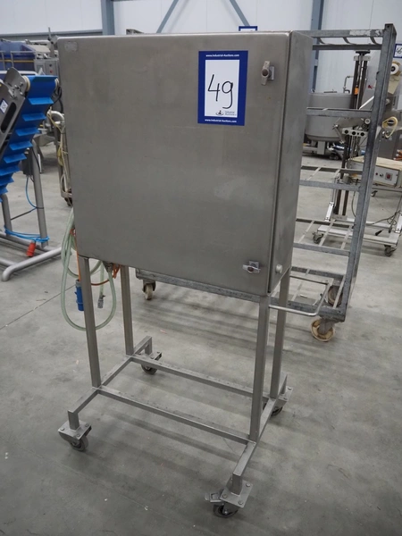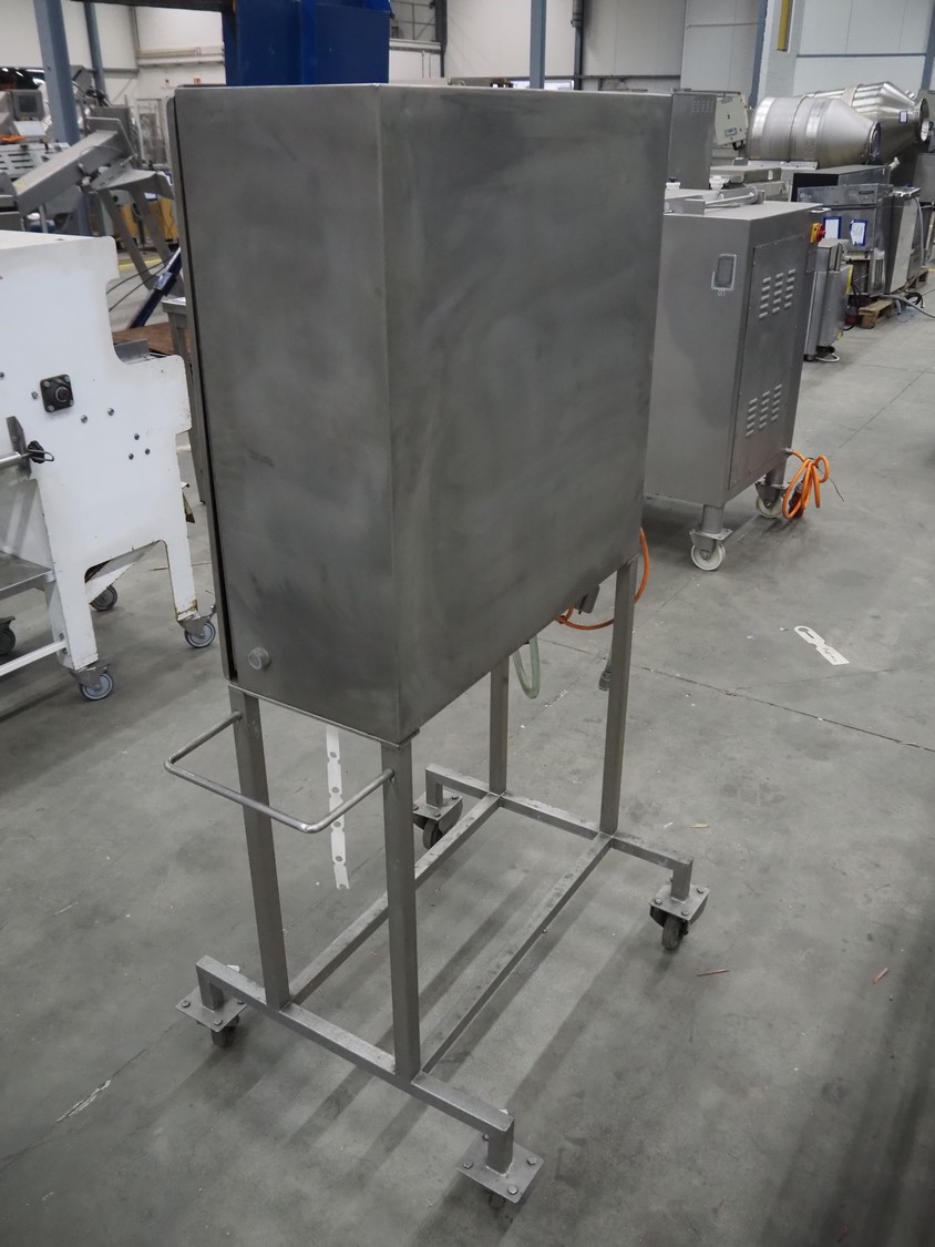 Kortho label printer in mobile s/s cabinet, type: 809518, dimensions: 960 mm x 750 mm x 1670 mm.