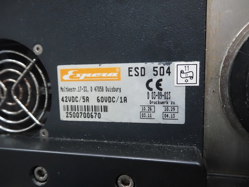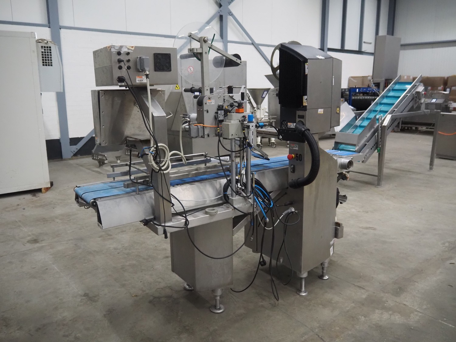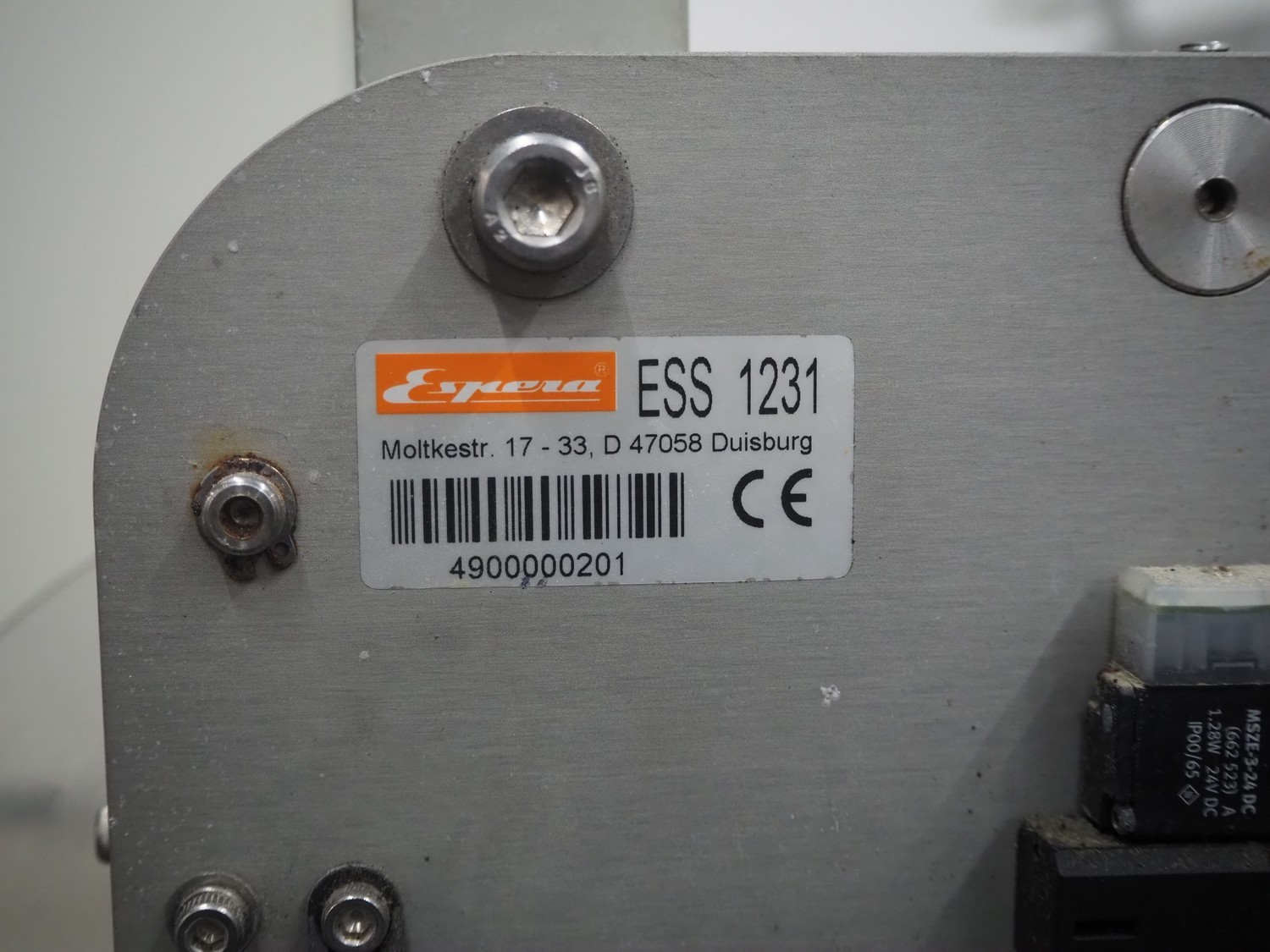 Espera top and botton labeller, type: ES7000, serial number: 1760000568, 230 V, 50/60 Hz, 10 A, plastic belt, belt width: 150 mm, label width: 90 mm, total dimensions: 2350 mm x 850 mm x 1900 mm.