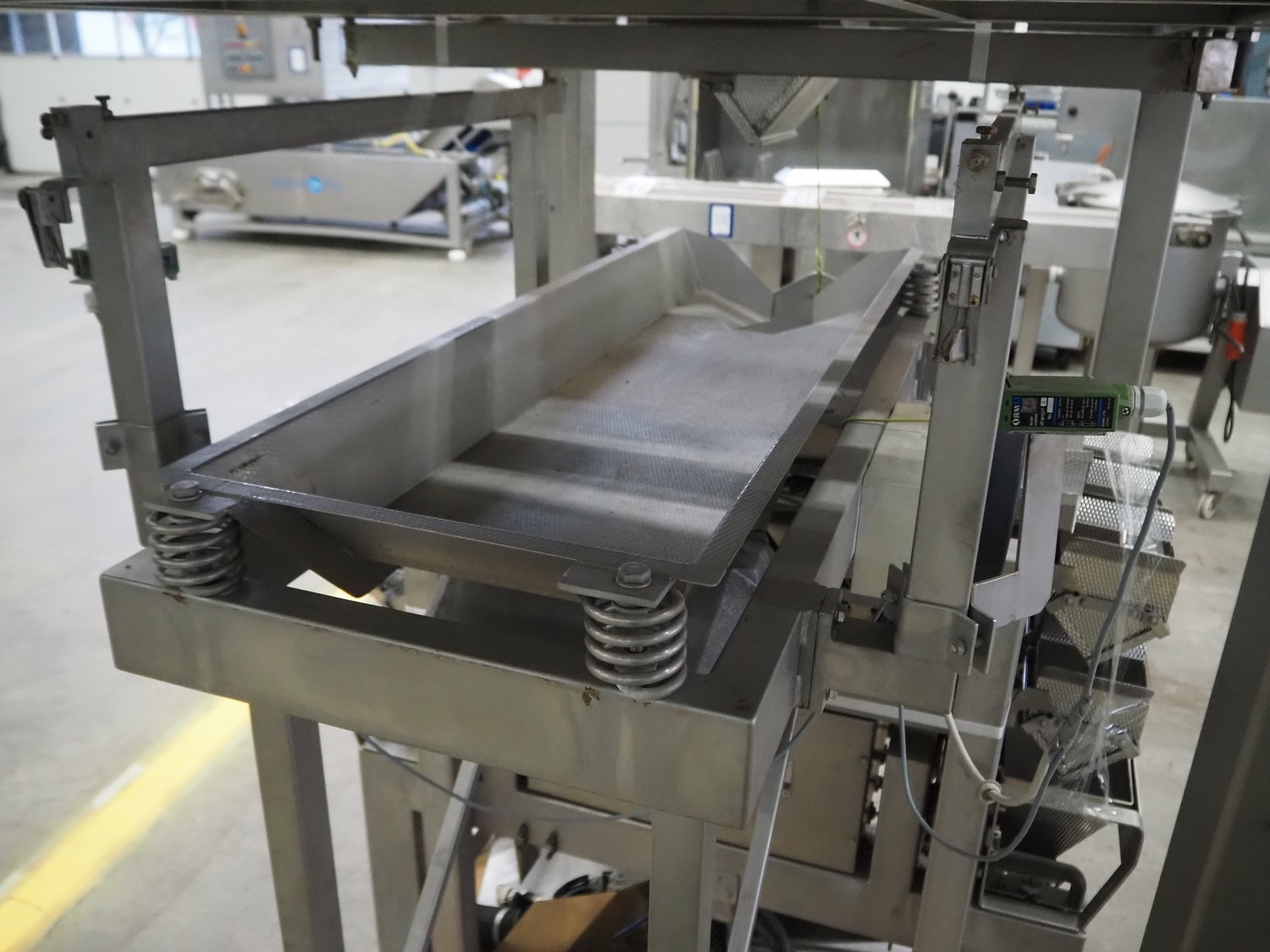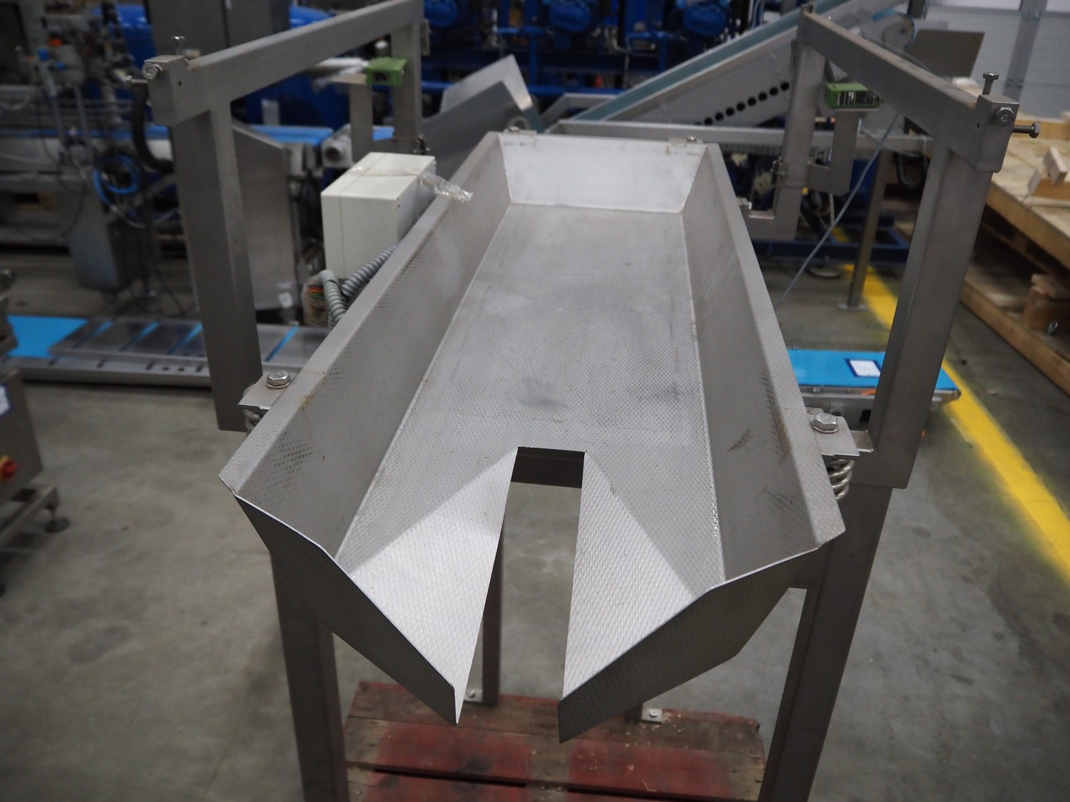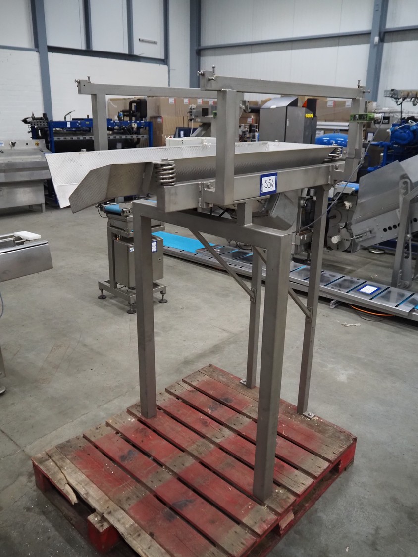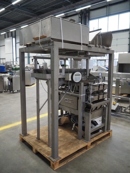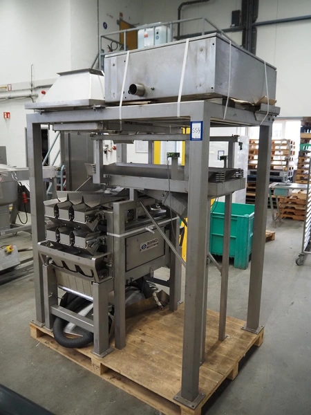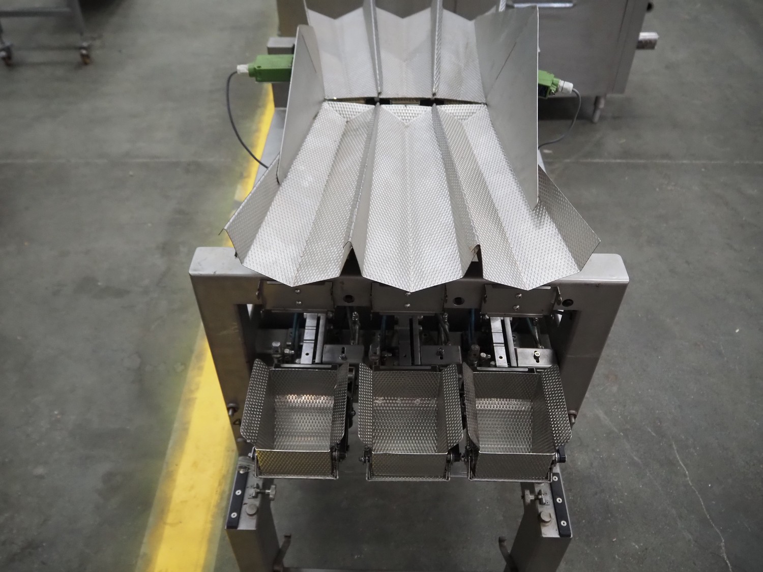 Bilwinco linear weigher consisting of: 2 6-lanes linear weighers, lane width: 120 mm, total dimensions: (2x) 1200 mm x 700 mm x 1300 mm, 2 vibrating gutters, gutter width: 350 mm, total dimensions: (2x) 1300 mm x 700 mm x 1600 mm, s/s frame with infeed hopper and switch cabinet, dimensions: 1600 mm x 1100 mm x 1750 mm. 1 weigher is incomplete.