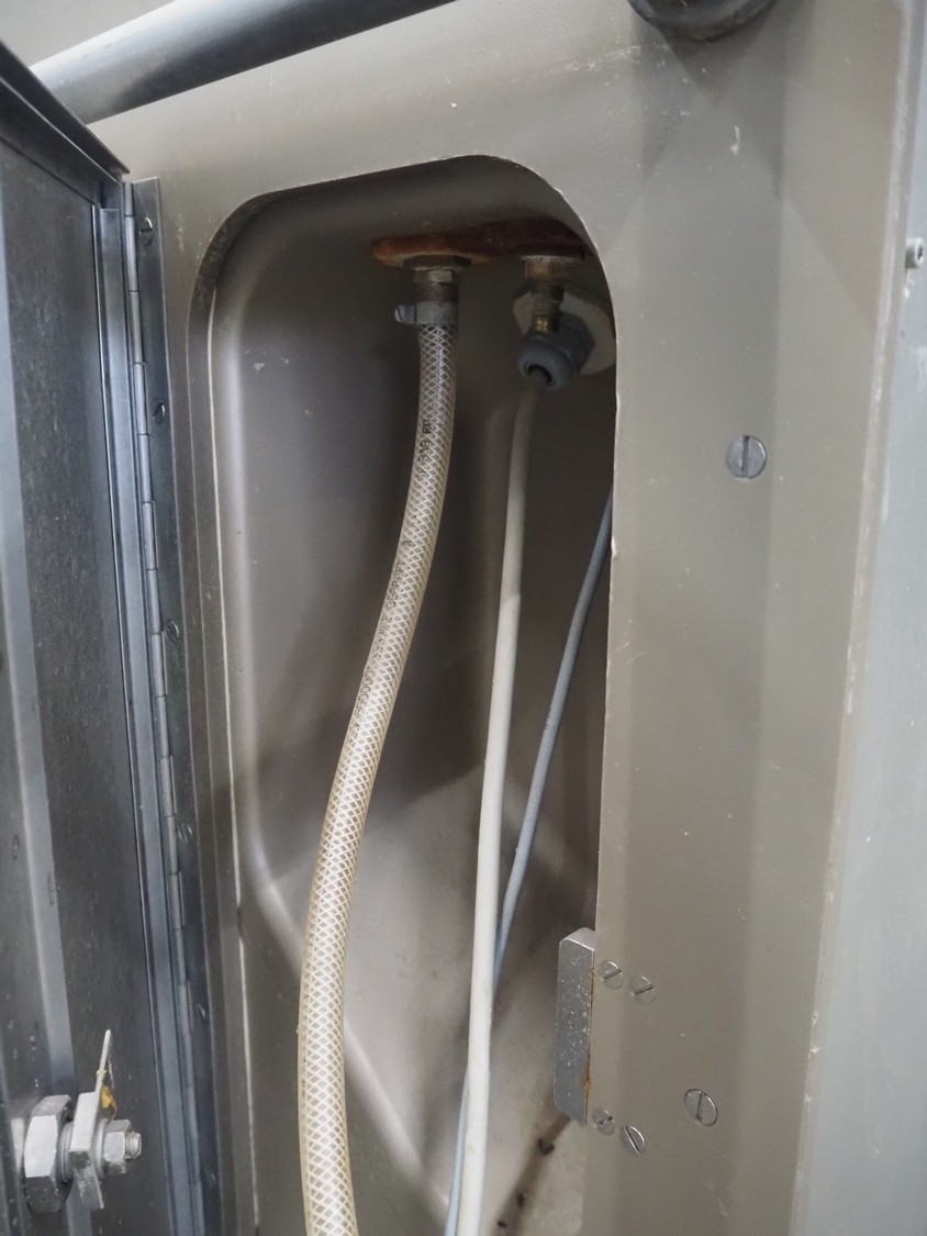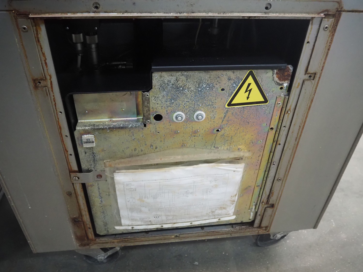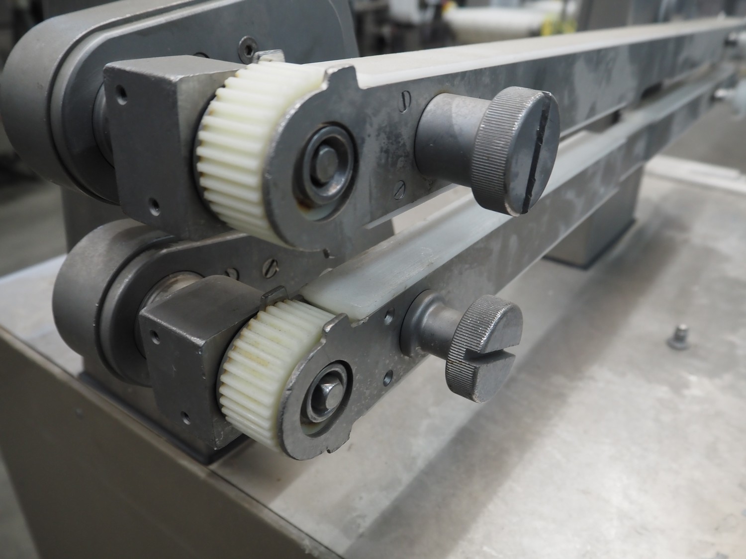 Handtmann mobile linker, type: 115-21, number: 337, year of construction: 2000, 400 V, 50 Hz, 3.5 A, 2.5 kW, dimensions: 1300 mm x 700 mm x 1250 mm. Missing belts.