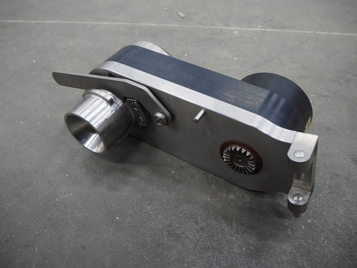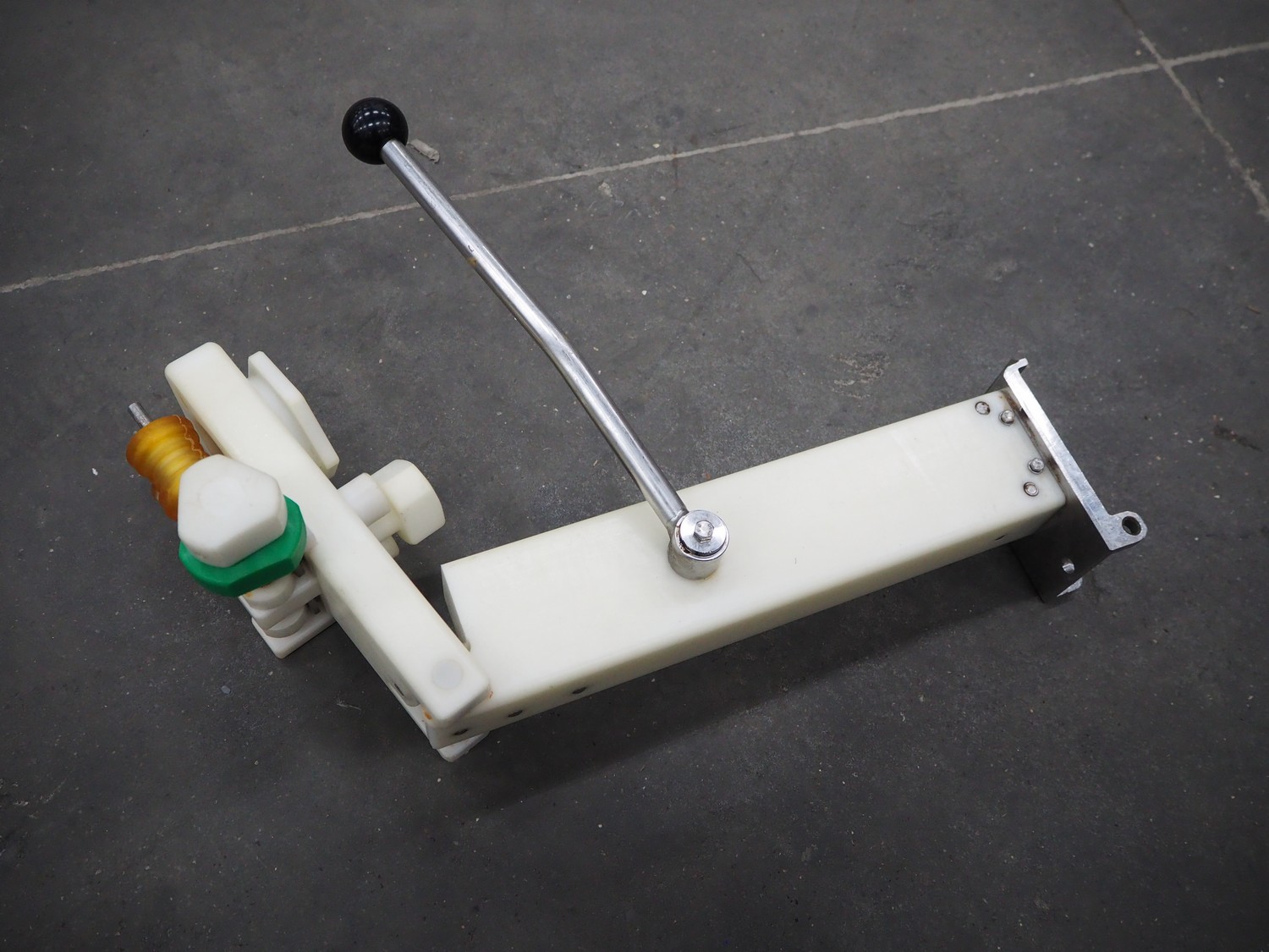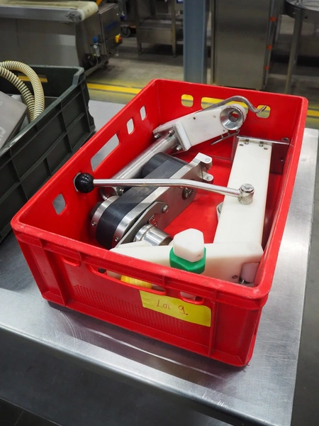 Plastic crate with Vemag linking attachment and case holding device, total dimensions: 600 mm x 400 mm x 200 mm.