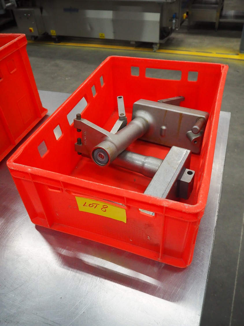 Plastic crate with 2 Handtmann linking attachment, type: 93-32, number: 399 and 486, dimensions: 600 mm x 400 mm x 200 mm.