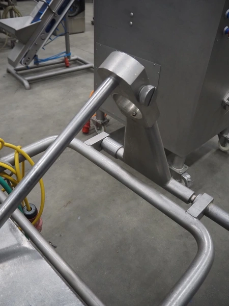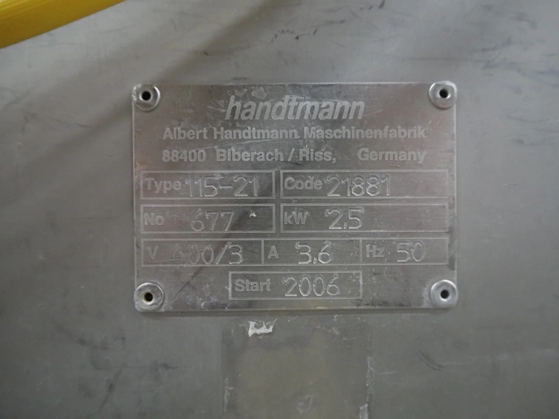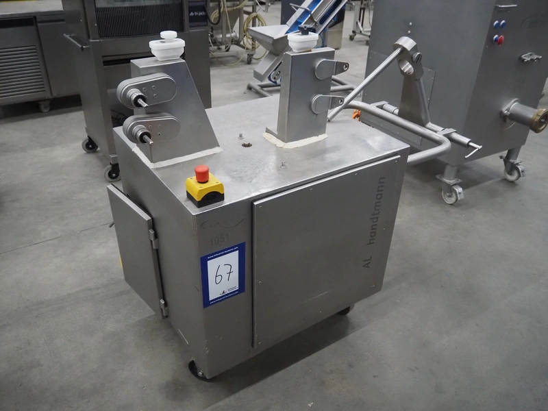 Handtmann mobile linker, type: 115-21, number: 677, year of construction: 2006, 400 V, 3 Ph, 50 Hz, 3.6 A, 2.5 kW, dimensions: 1300 mm x 700 mm x 1250 mm. Incomplete.
