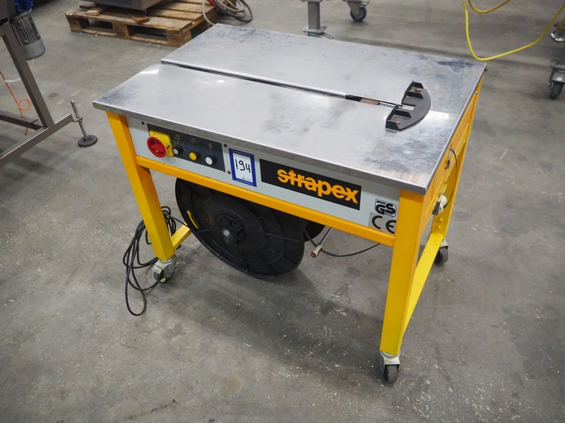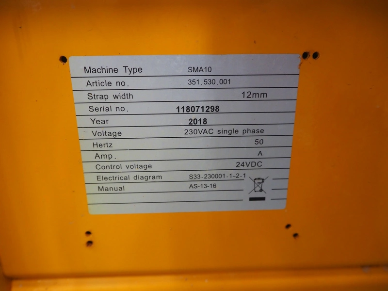 Strapex mobile binding machine, type: SMA10, serial number: 118071298, year of construction: 2018, 230 V, 50 Hz, strap width: 12 mm, dimensions: 900 mm x 600 mm x 750 mm.