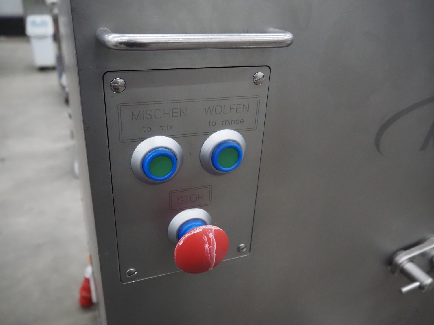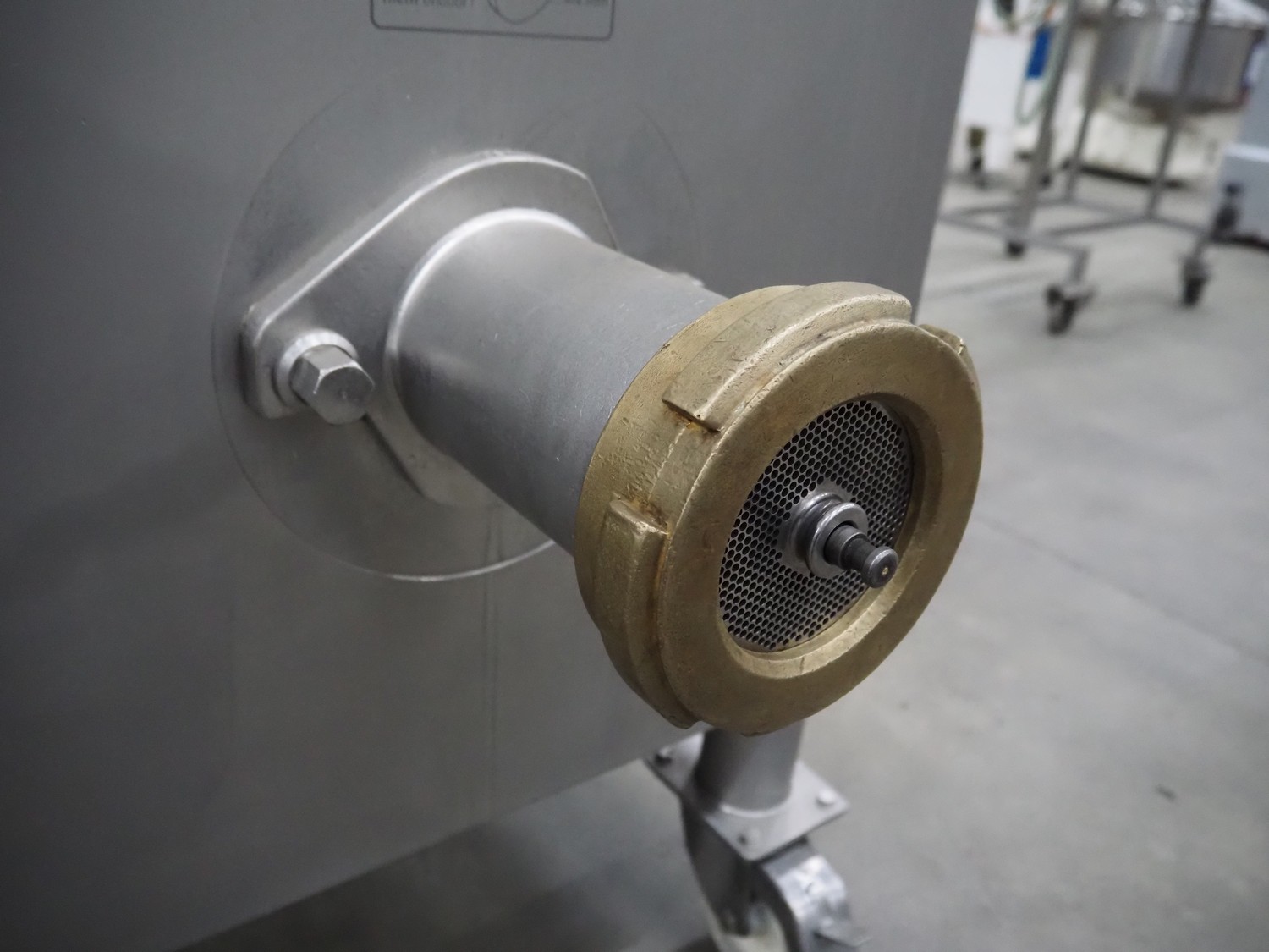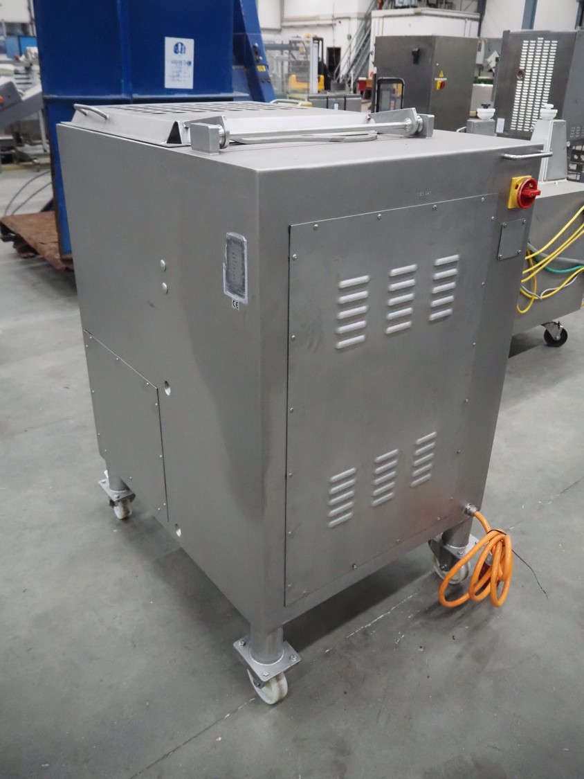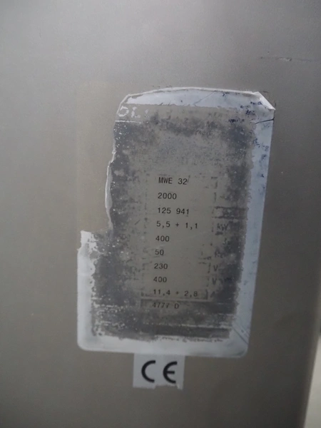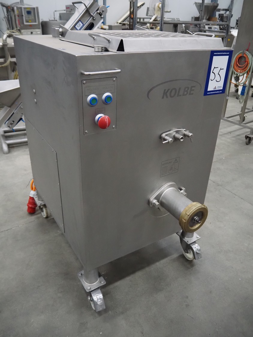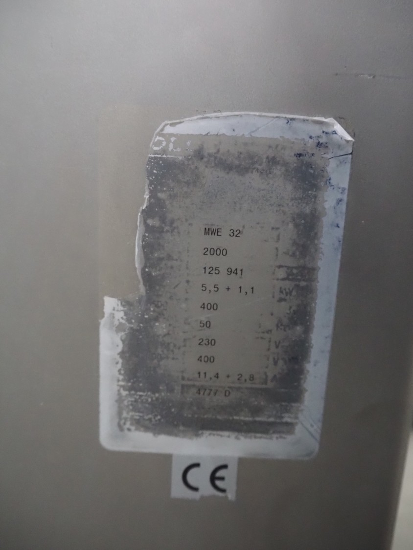 Kolbe mobile mixer-grinder, type: MWE 32, serial number: 125 941, year of construction: 2000, 400 V, 3 Ph, 50 Hz, 11.4+2.8 A, 6.6 kW, weight: 480 kg, plate diameter: 98 mm, dimensions: 1350 mm x 770 mm x 1350 mm.