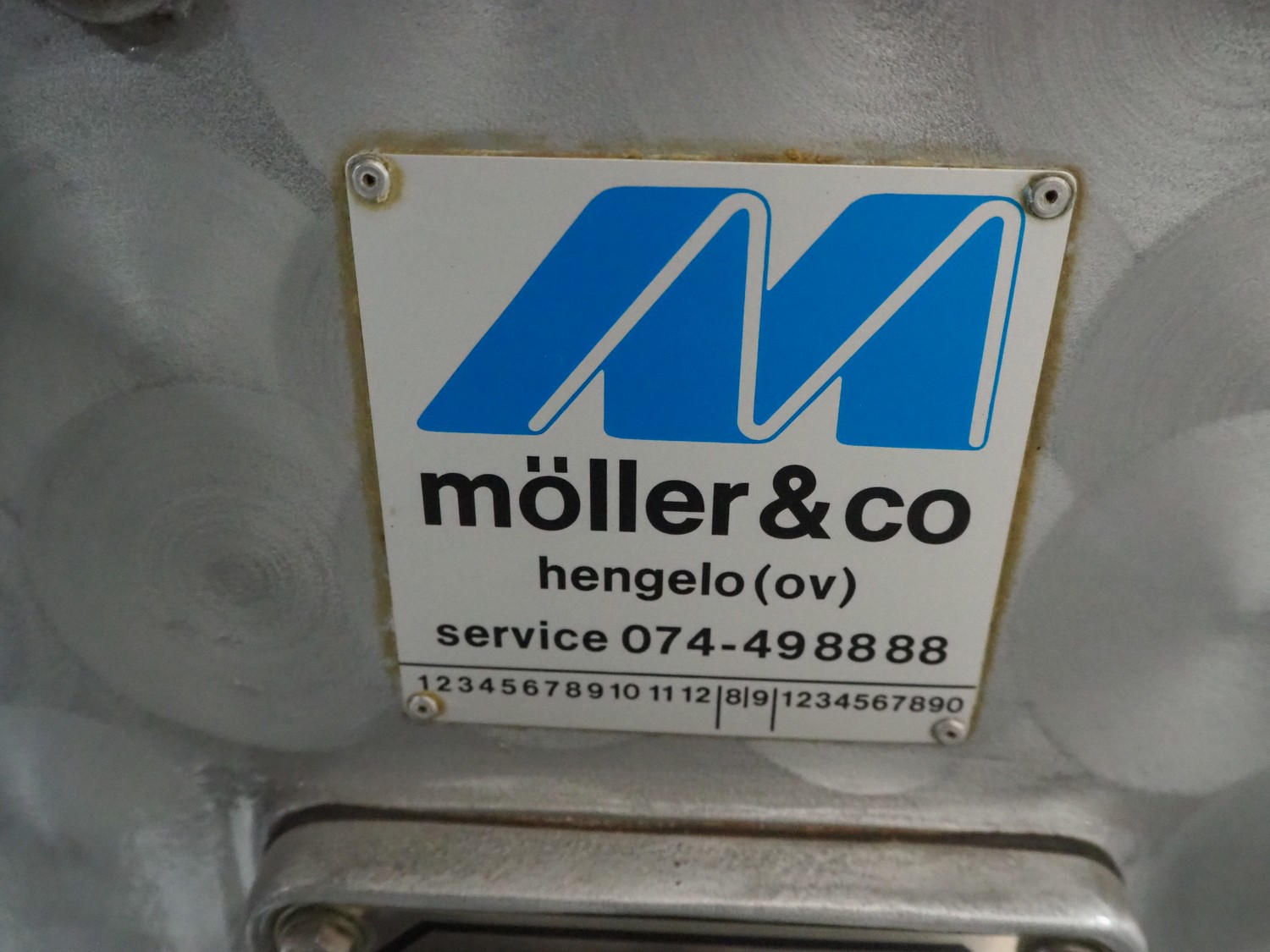 Moller & Co grinder, plate diameter: 98 mm, total dimensions: 600 mm x 900 mm x 1200 mm.