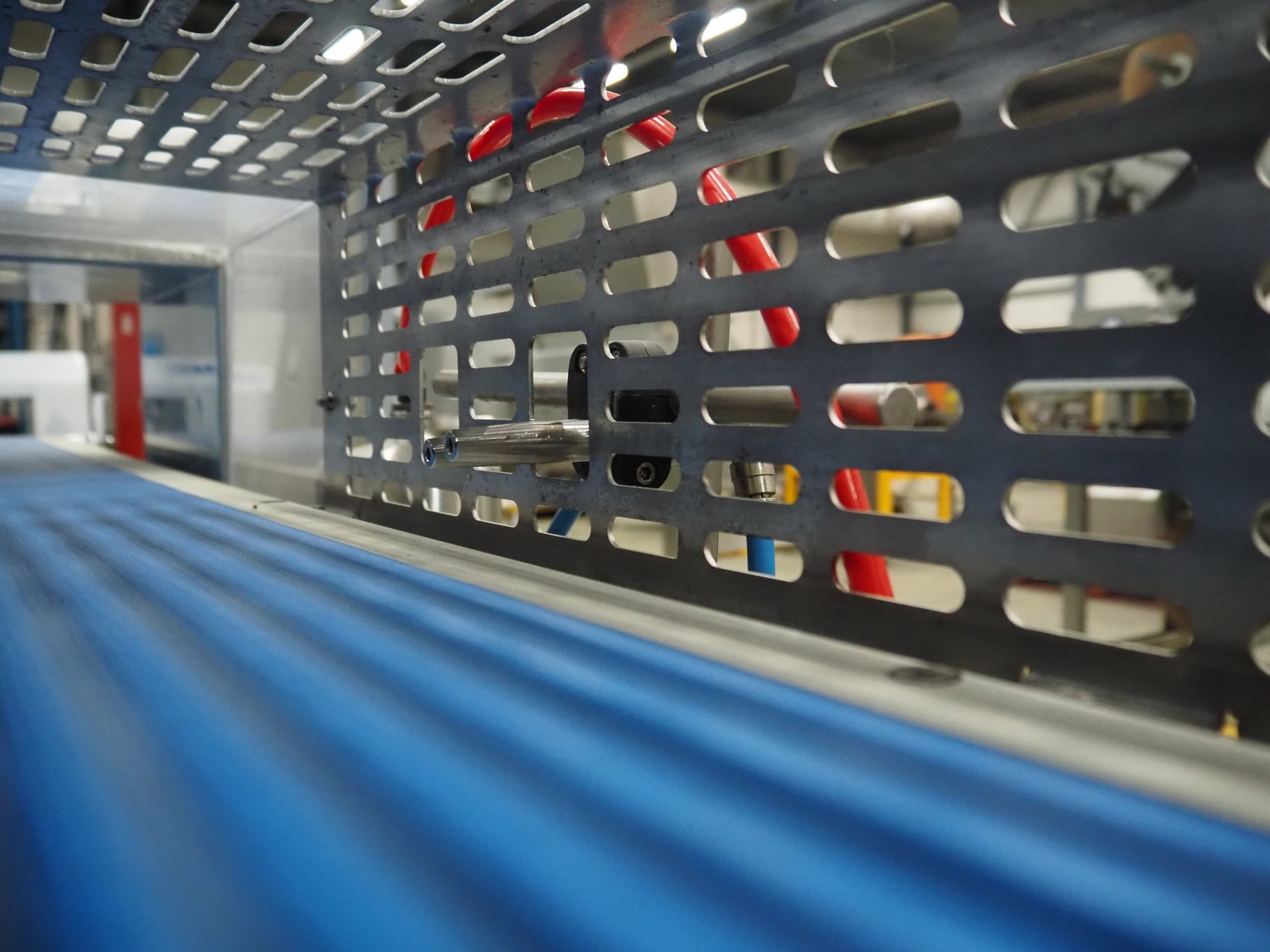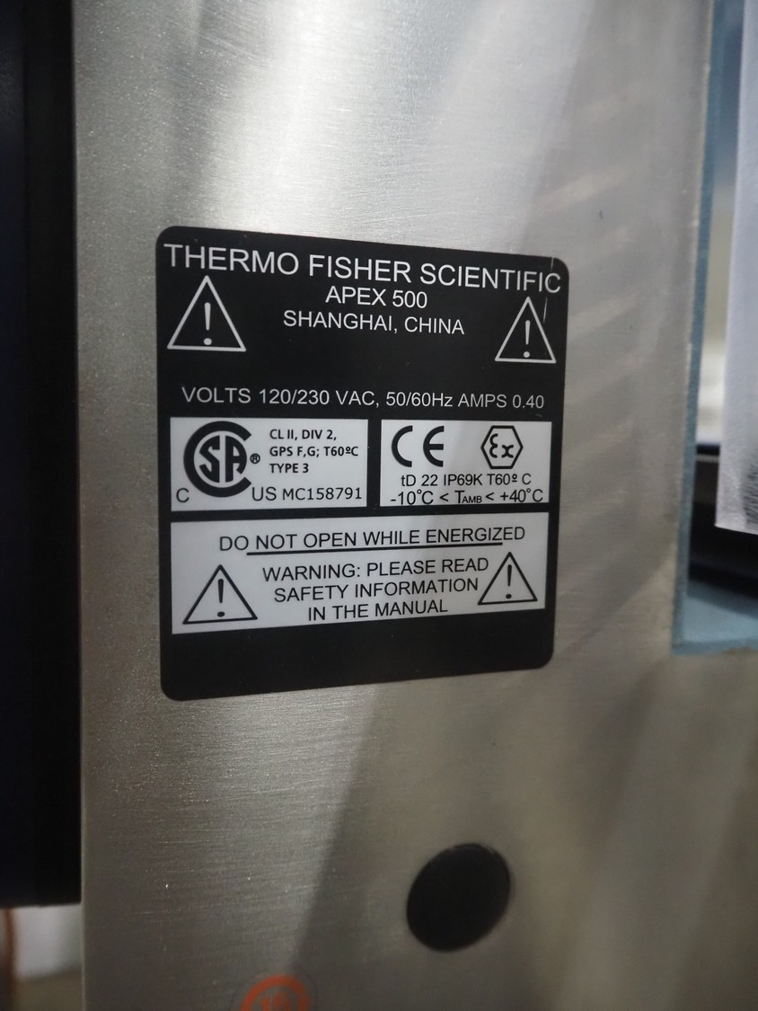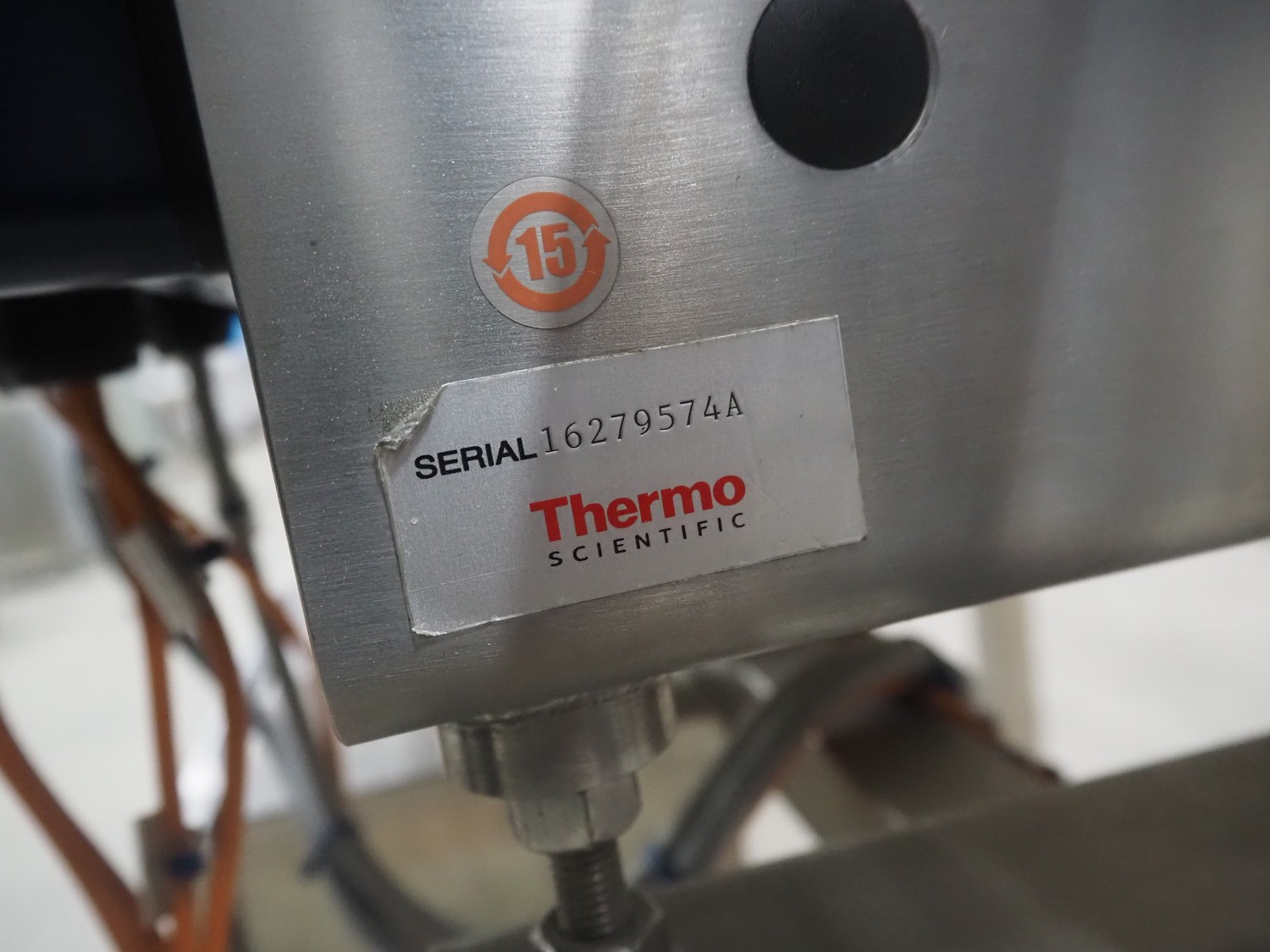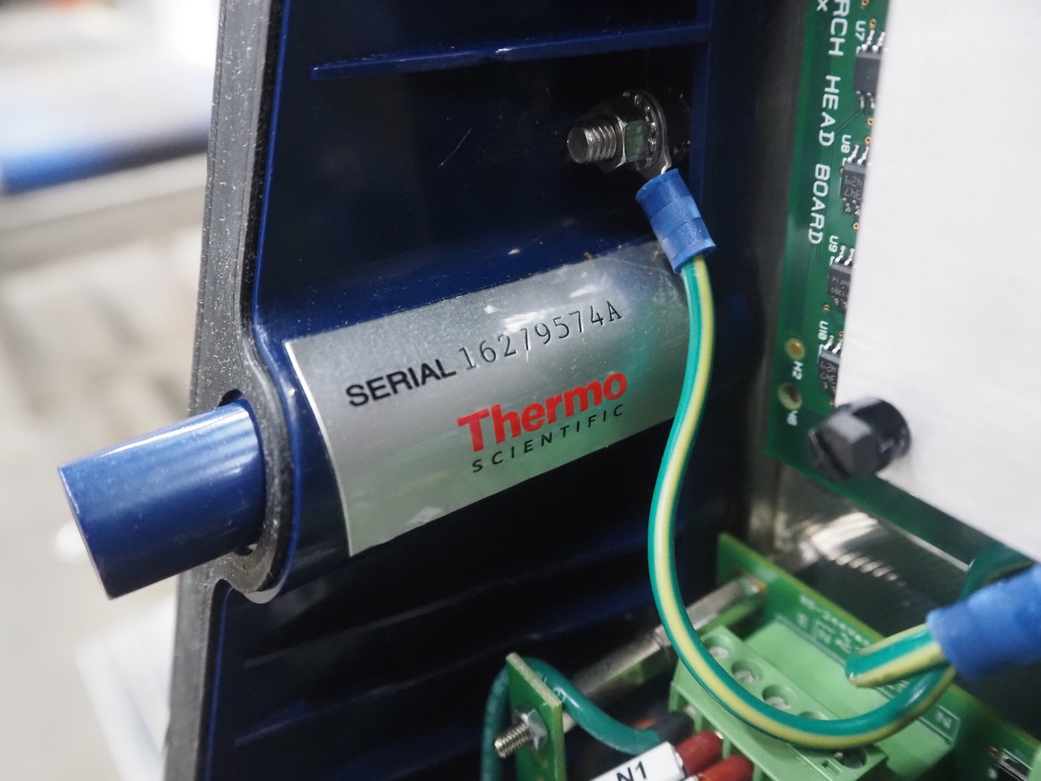Thermo Fischer metal detector with rejecter, model: Apex500, 120/230 V, 50/60 Hz, 0.4 A, plastic belt, belt width: 250 mm, clearance: 350 mm x 150 mm, total dimensions: 1750 mm x 800 mm x 1360 mm.