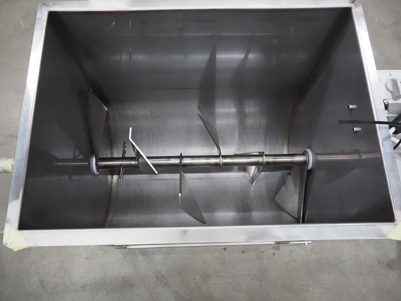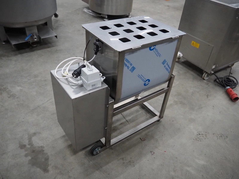 Mobile tiltable mixer, dimensions inside: 500 mm x 345 mm x 480 mm, total dimensions: 1100 mm x 400 mm x 820 mm.